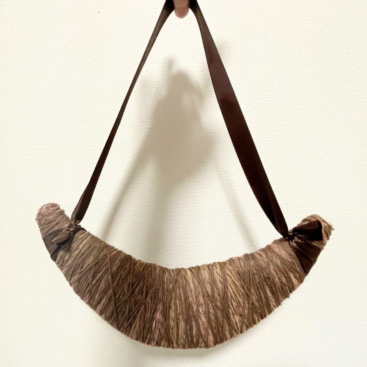 段ボールや緩衝材が見えなくなるように、茶系の毛糸を巻き付けます。