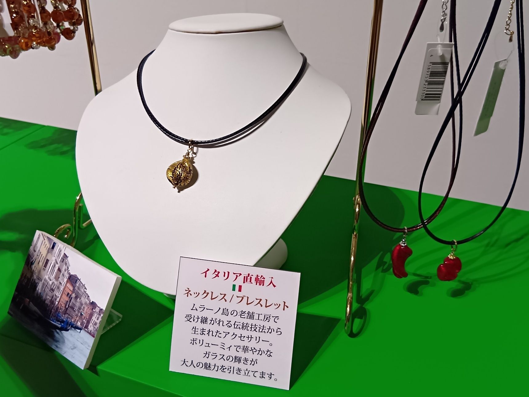 『天空のアトラス イタリア館の至宝』展来館の記念に、こちらのコーナーのネックレスを1つ選んで入手しました~!