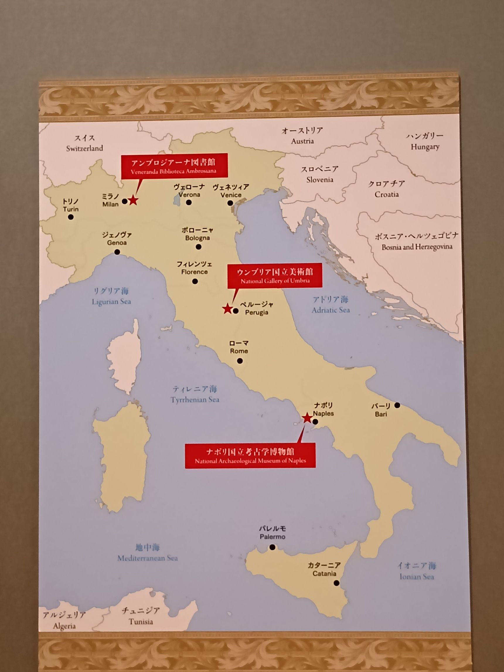 今回は、各至宝の所蔵先の説明や、イタリアの国のどの辺りに所蔵先があるかも展示されていて◎!