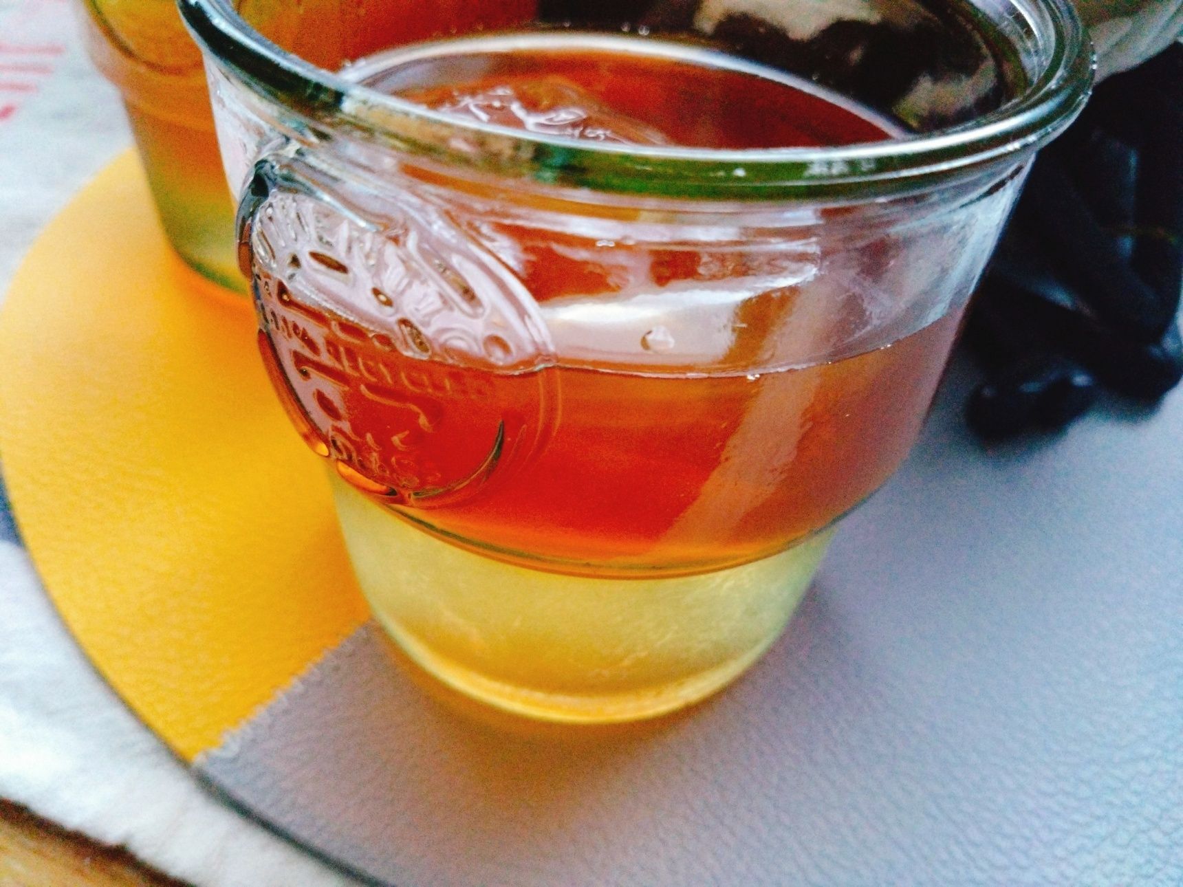 1.グラスにはちみつとレモン汁を入れて、よく混ぜたら水を注ぎさらに混ぜる
