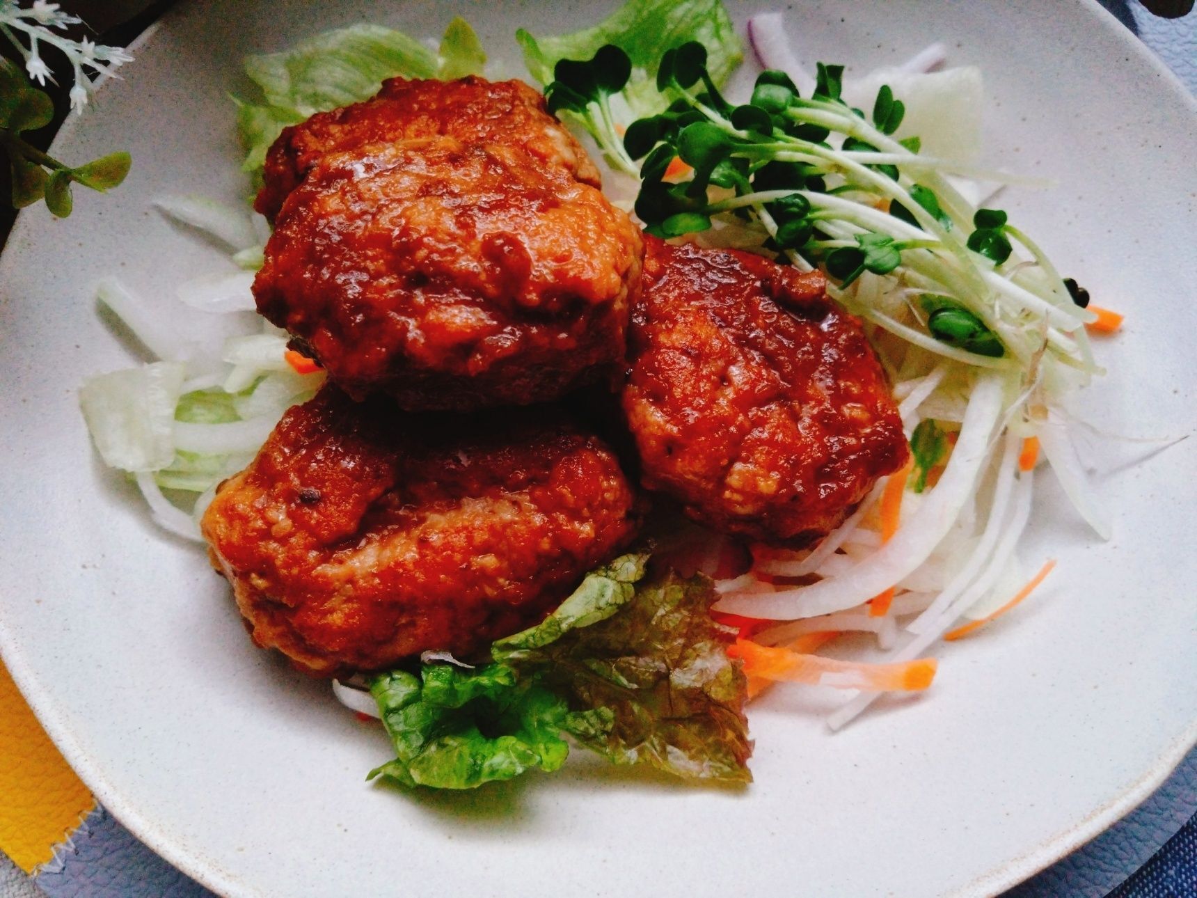 作り方 1.ボウルにAを入れてよく混ぜる 2.フライパンにこめ油を熱して、Aを食べやすい大きさの形に形成して並べていく 3.蓋をして両面5分づつ蒸し焼きにする 4.焼肉のたれを入れ絡めながら両面焼いていく 皿に盛りつけて七味をふりかけたら完成