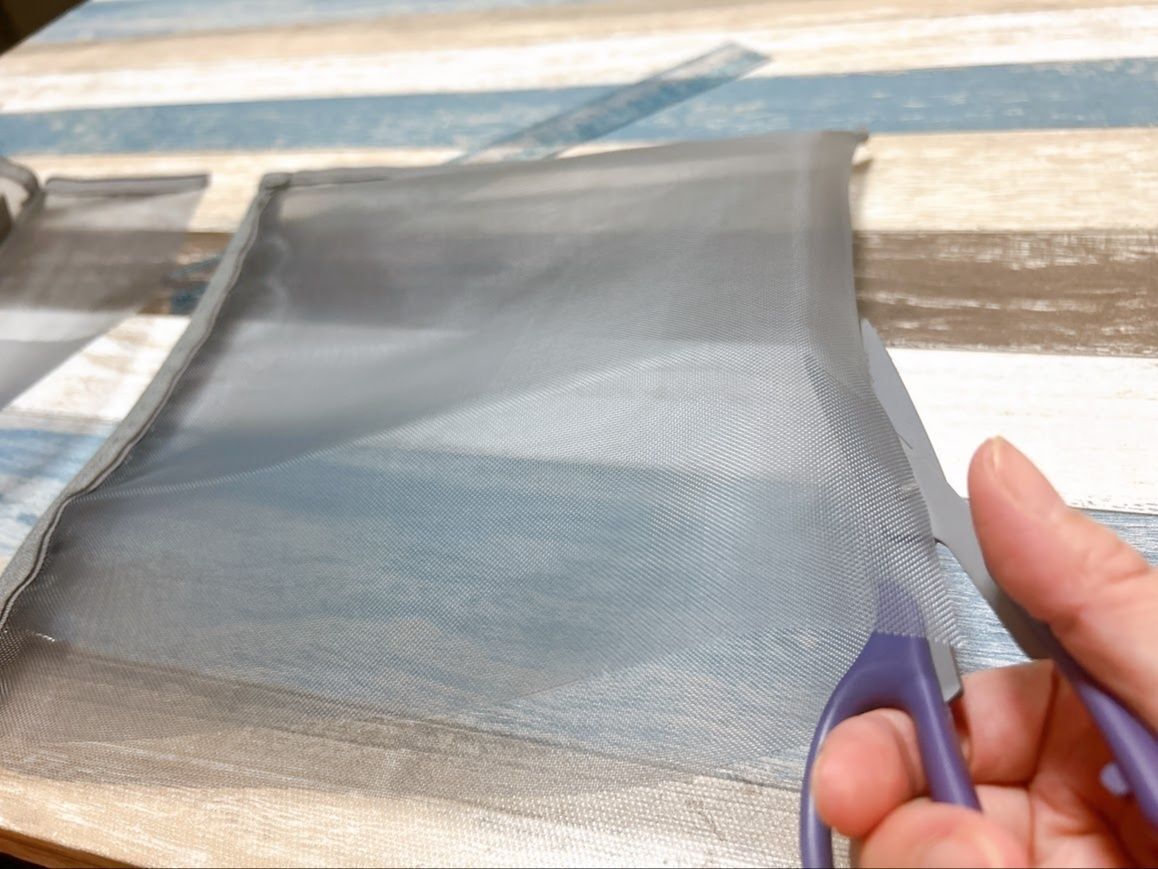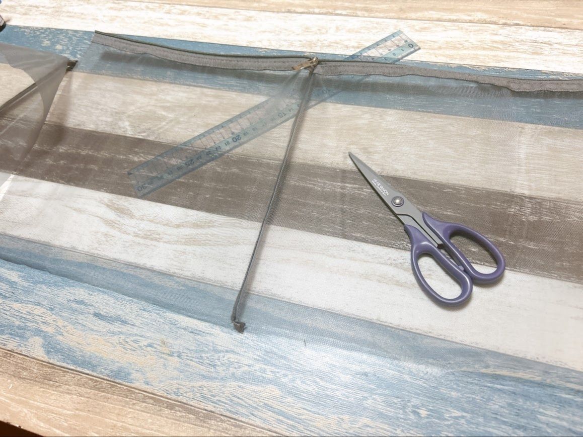 ファスナーを開け切ったときにスライダーがない側の辺を切り落とします。