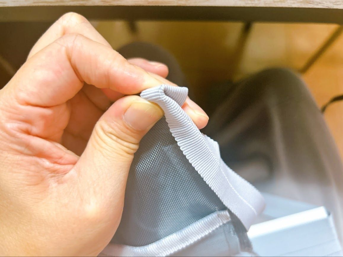 真ん中の縫い目のところはどっちかに倒してください。