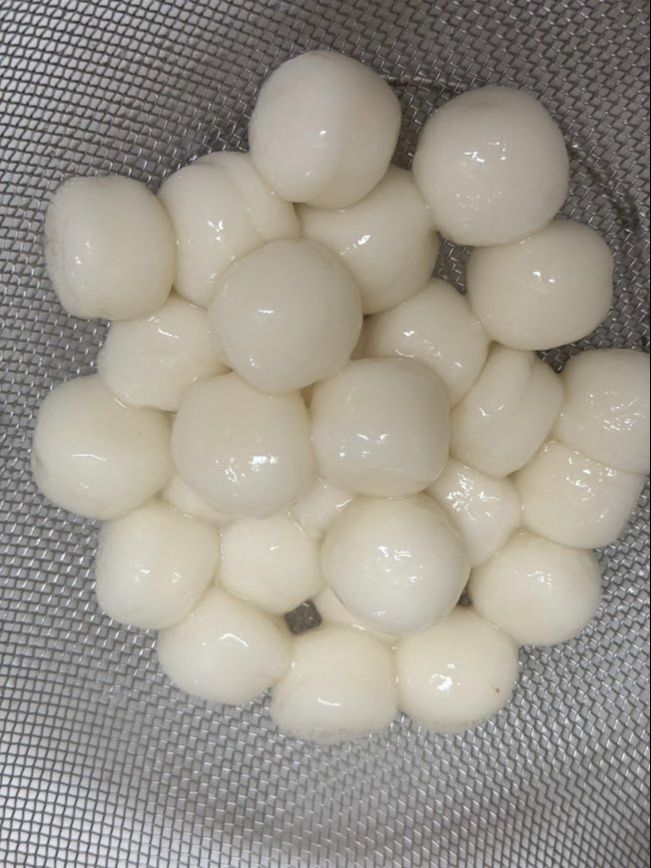 わたしは何よりも手軽なのが好きなので…業務スーパーで買った冷凍の「白玉だんご」を使います。「白玉だんご」はたっぷりのお湯でゆでます。