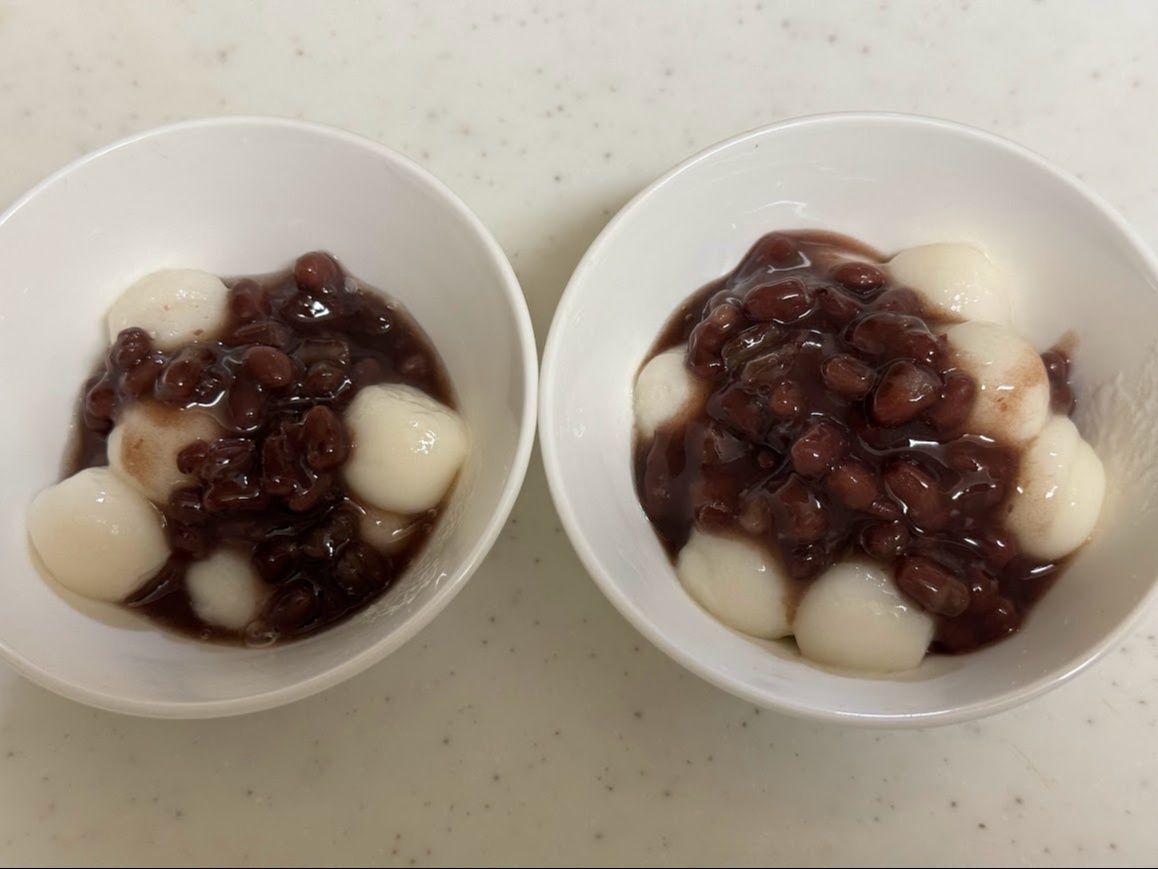 熱々ゆでたての「白玉だんご」に直接「ゆであずき」をたっぷりのせます。