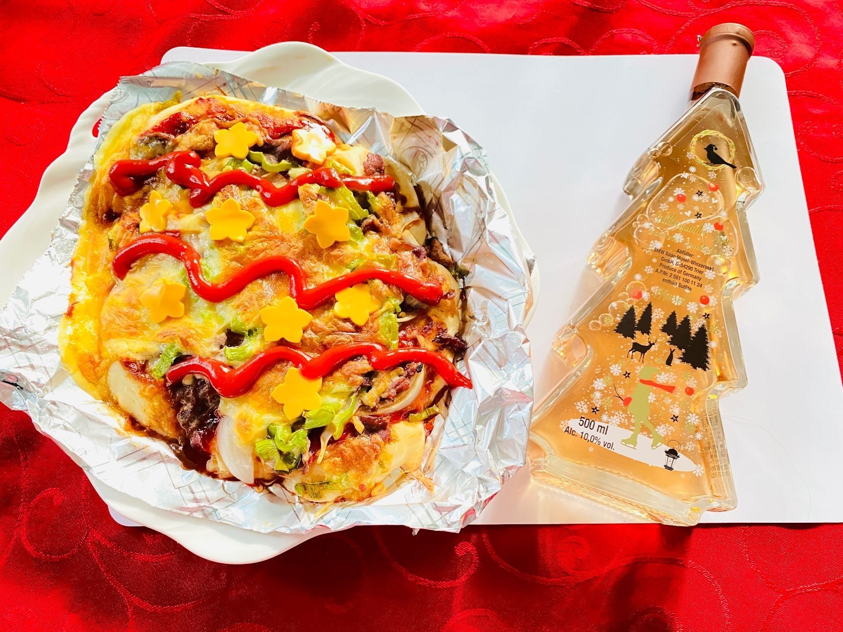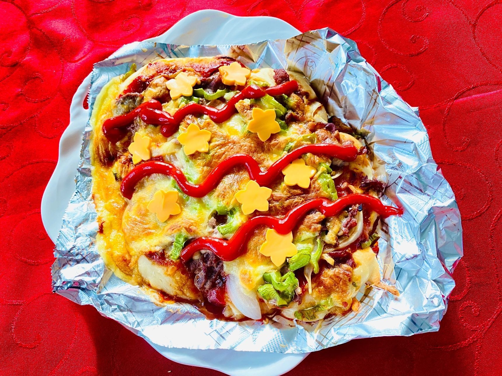 チェダーチーズを星型に型抜きして飾り、トマトケチャップでデコレーションしました。