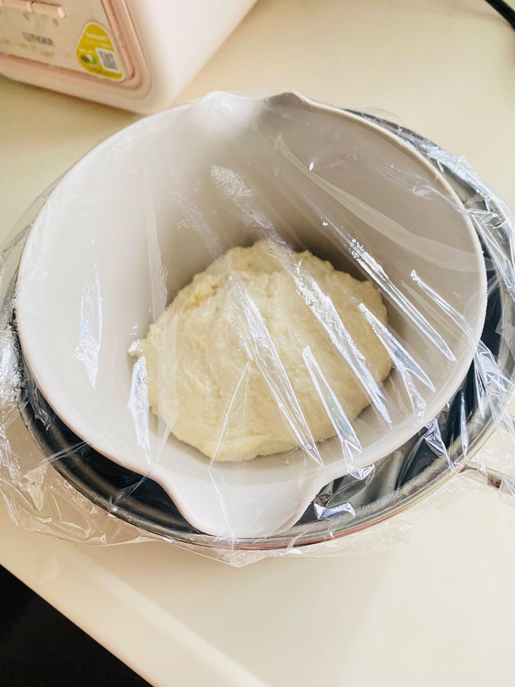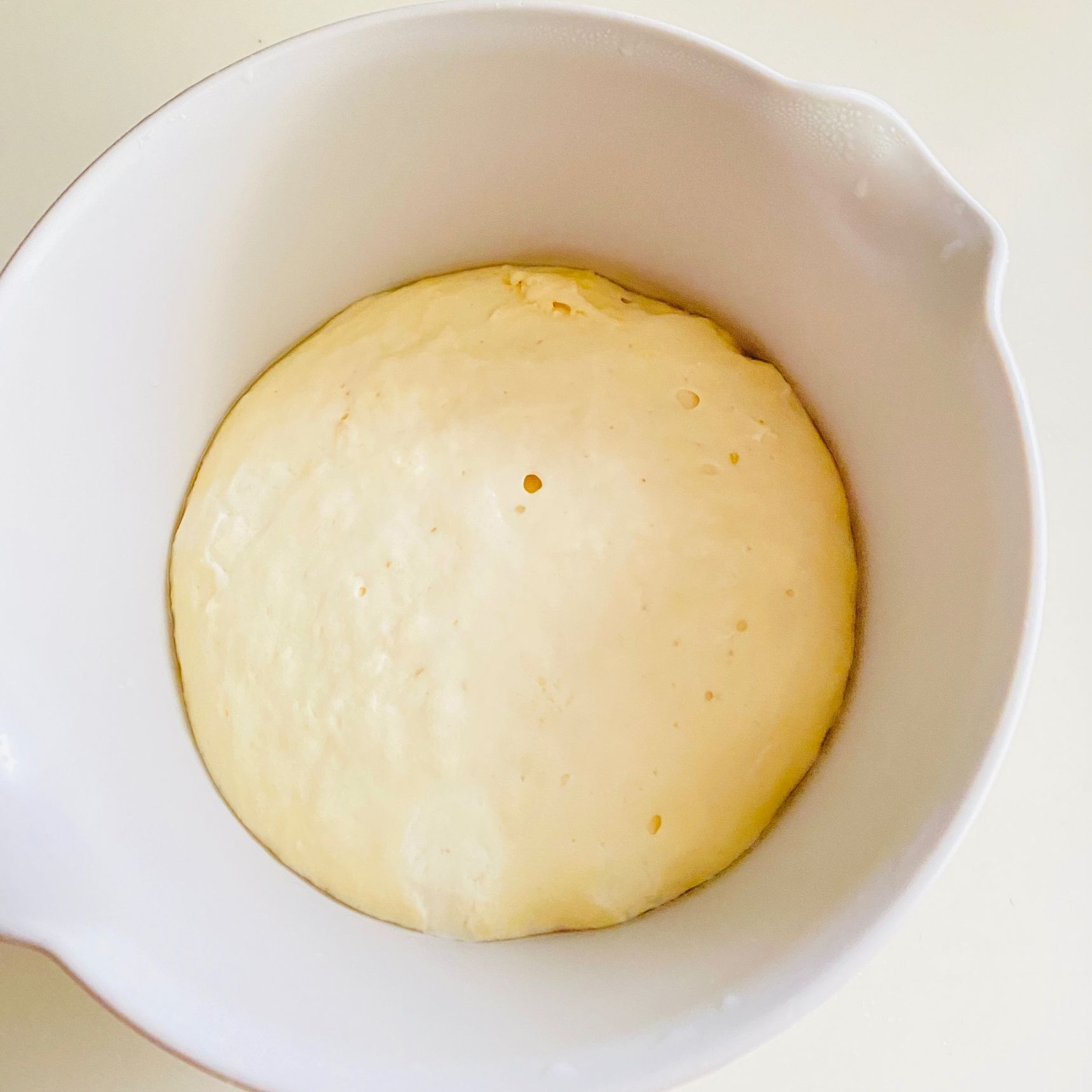 ドライイースト、砂糖、塩を入れかき混ぜます。