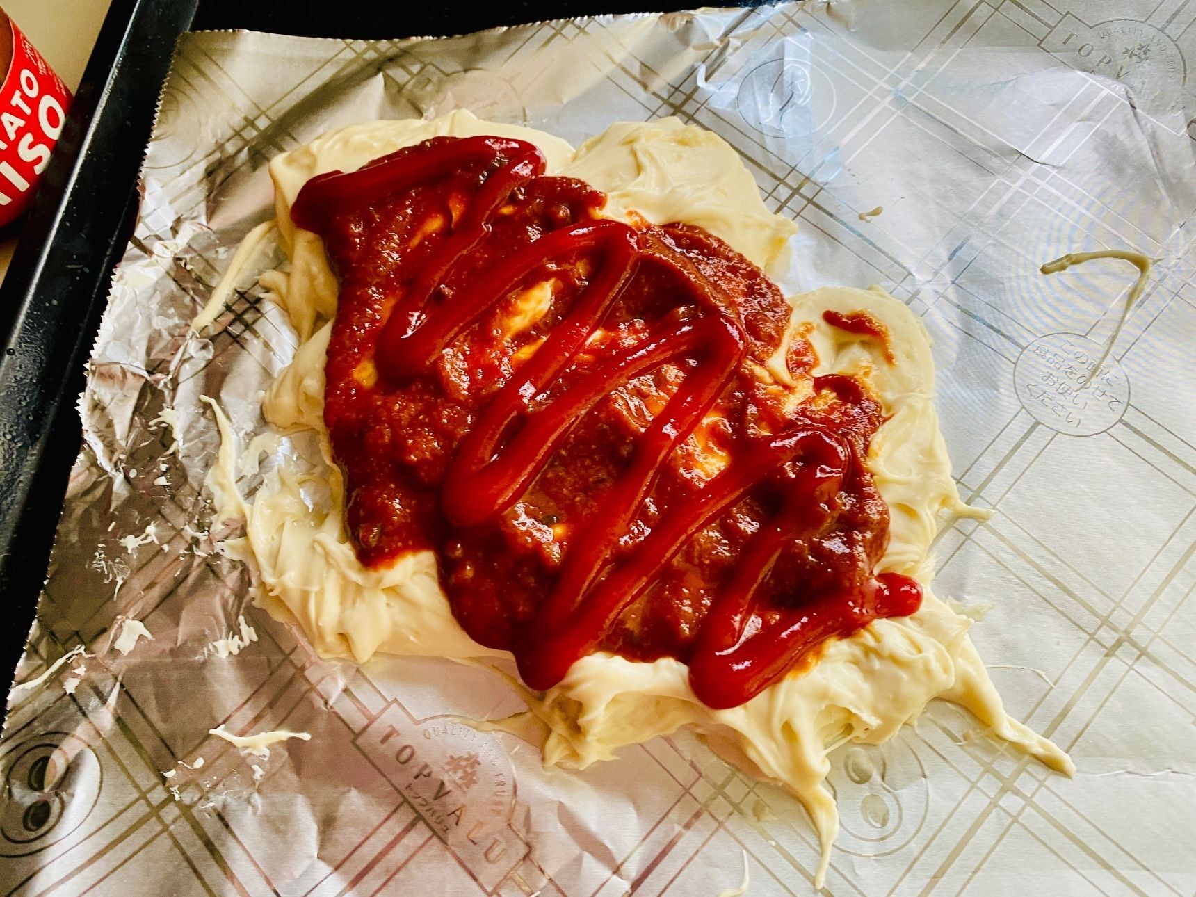 とまと味噌の代わりに、市販のピザ用ソースでもOKですよ。