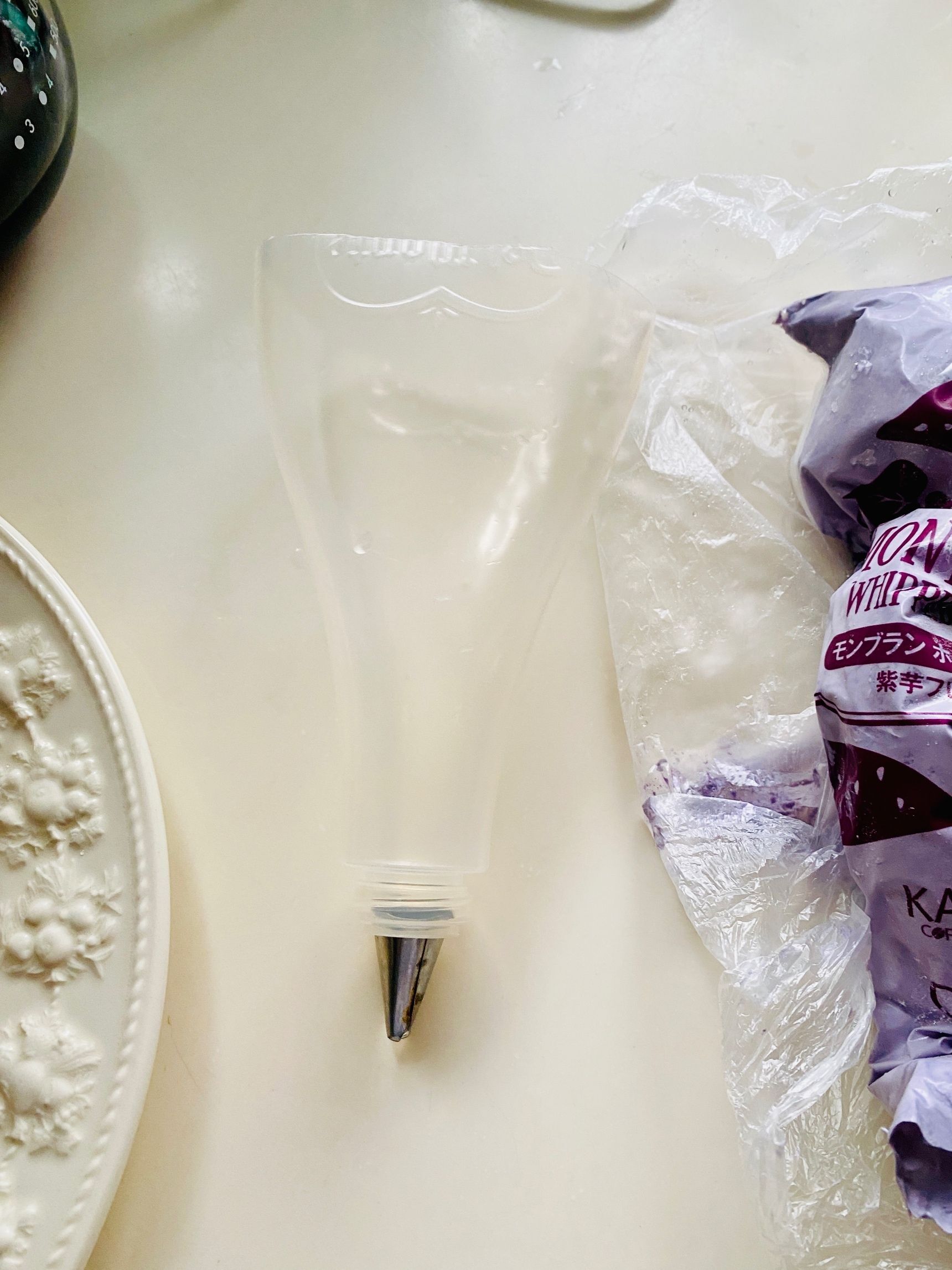少しわかりづらいですが、チューブのところに絞り口金を上側から差し込みます。