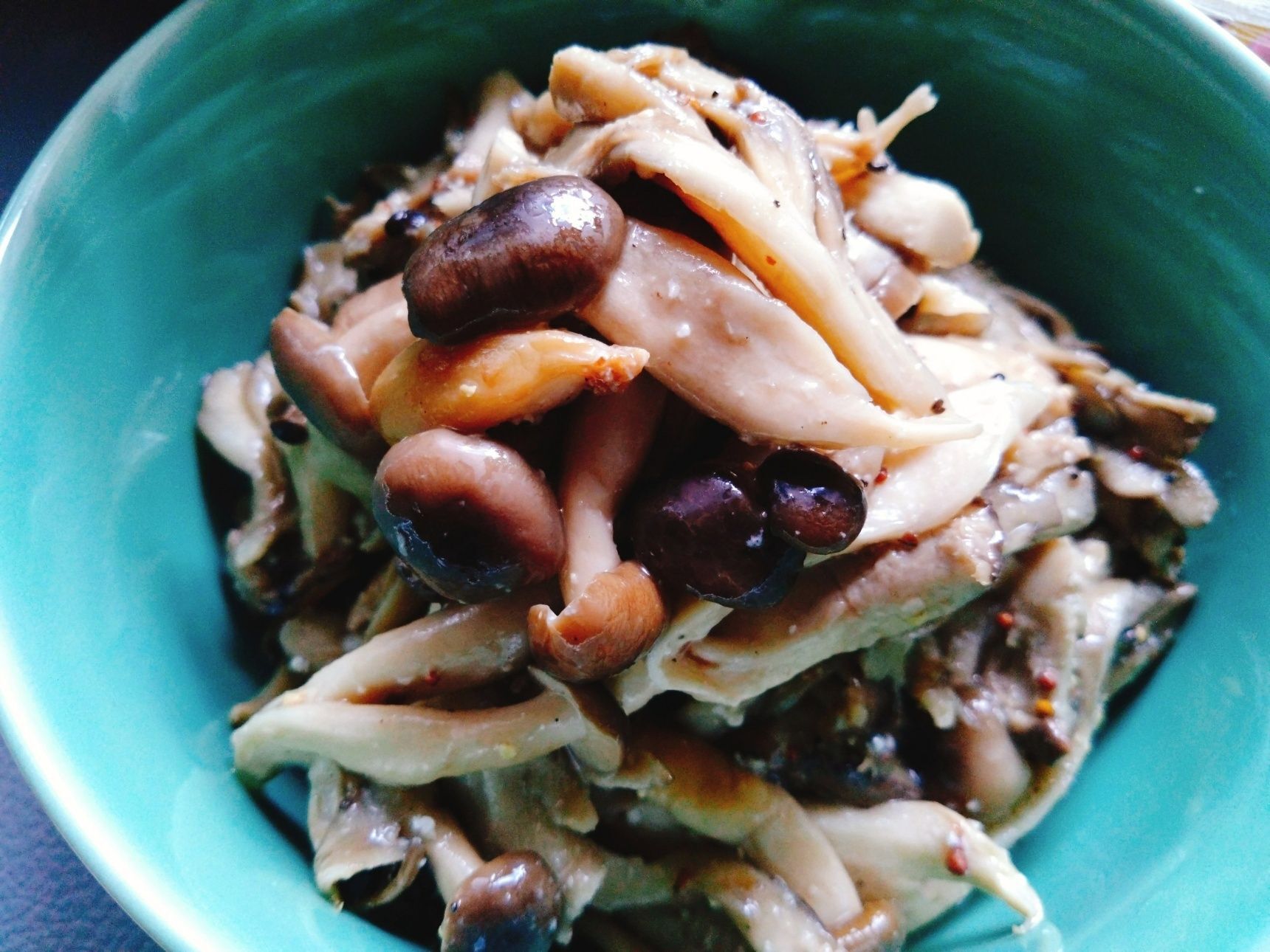 1.フライパンにこめ油を熱し、きのこを入れてあまり触らないように