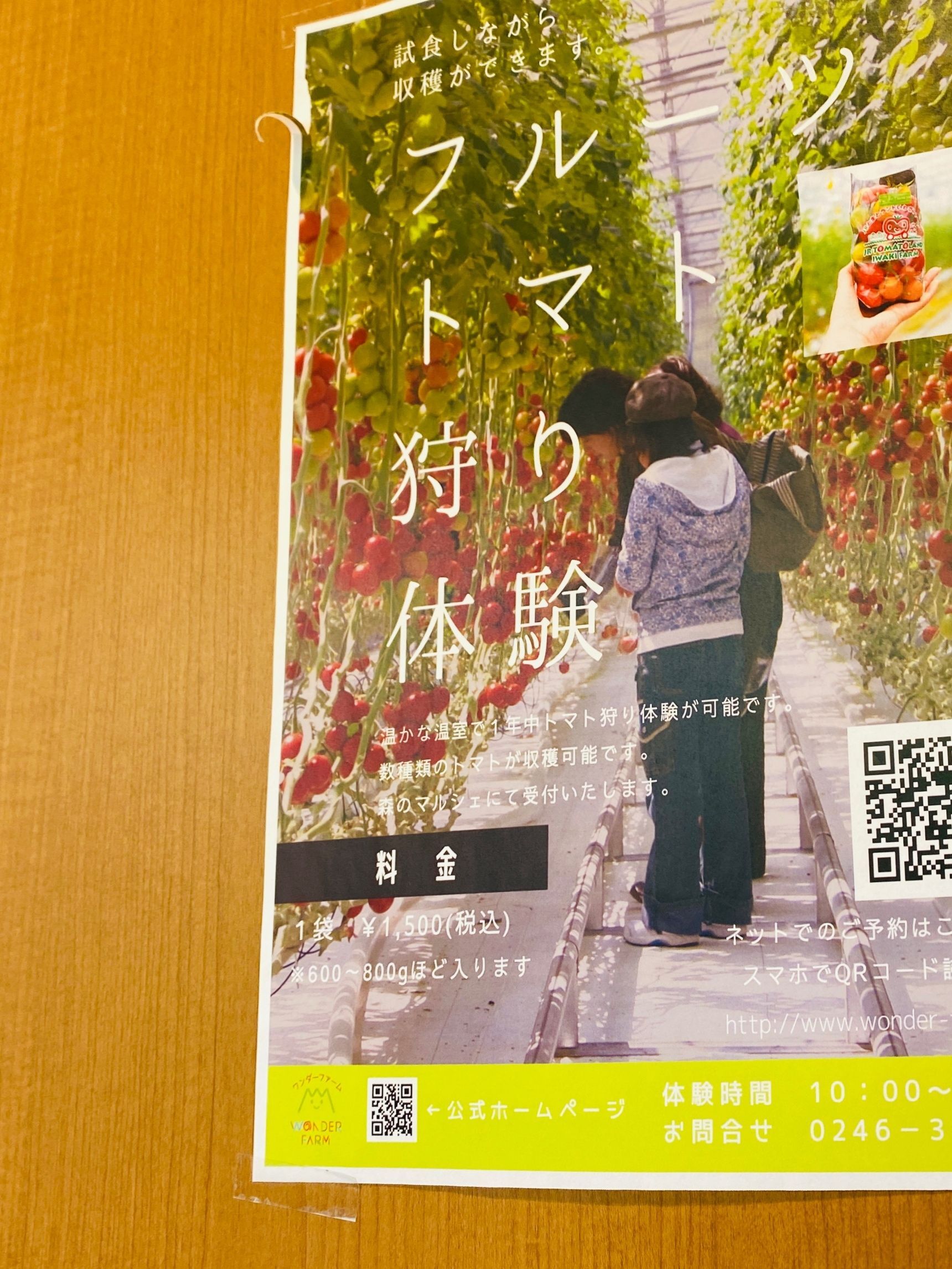 トマト狩りを楽しめる「ワンダーファーム」や、ワンダーファーム側にあります「とまとランドいわき」などがあります。