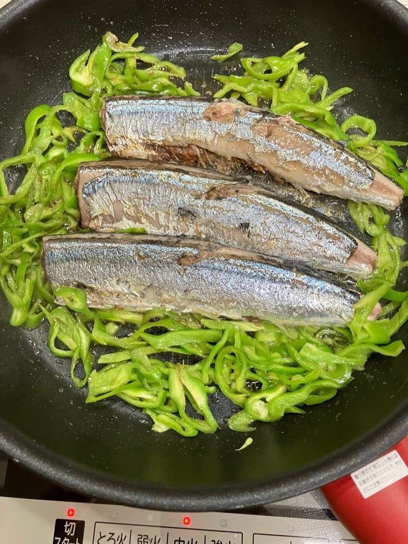 秋刀魚としし唐を焼いて。