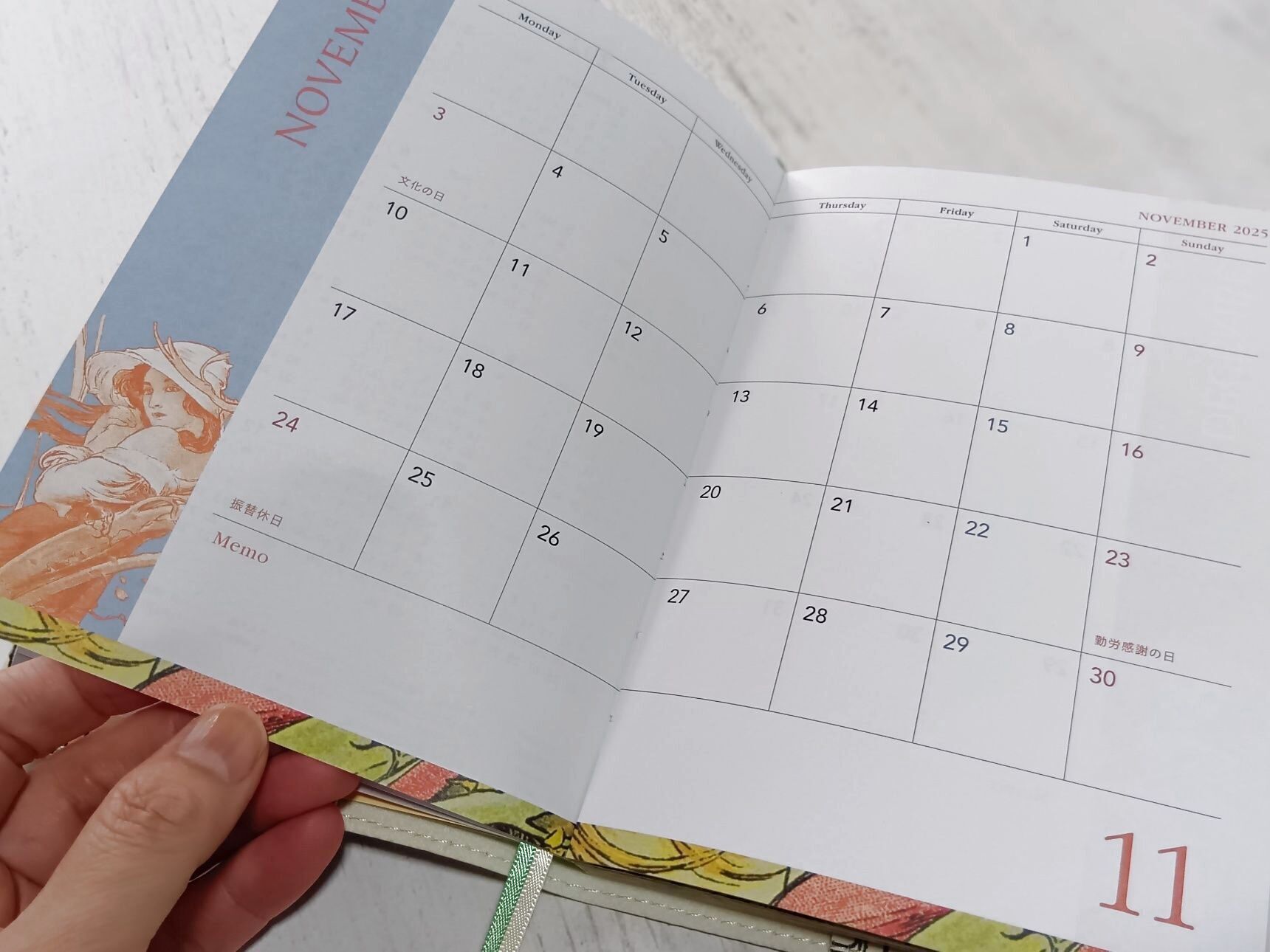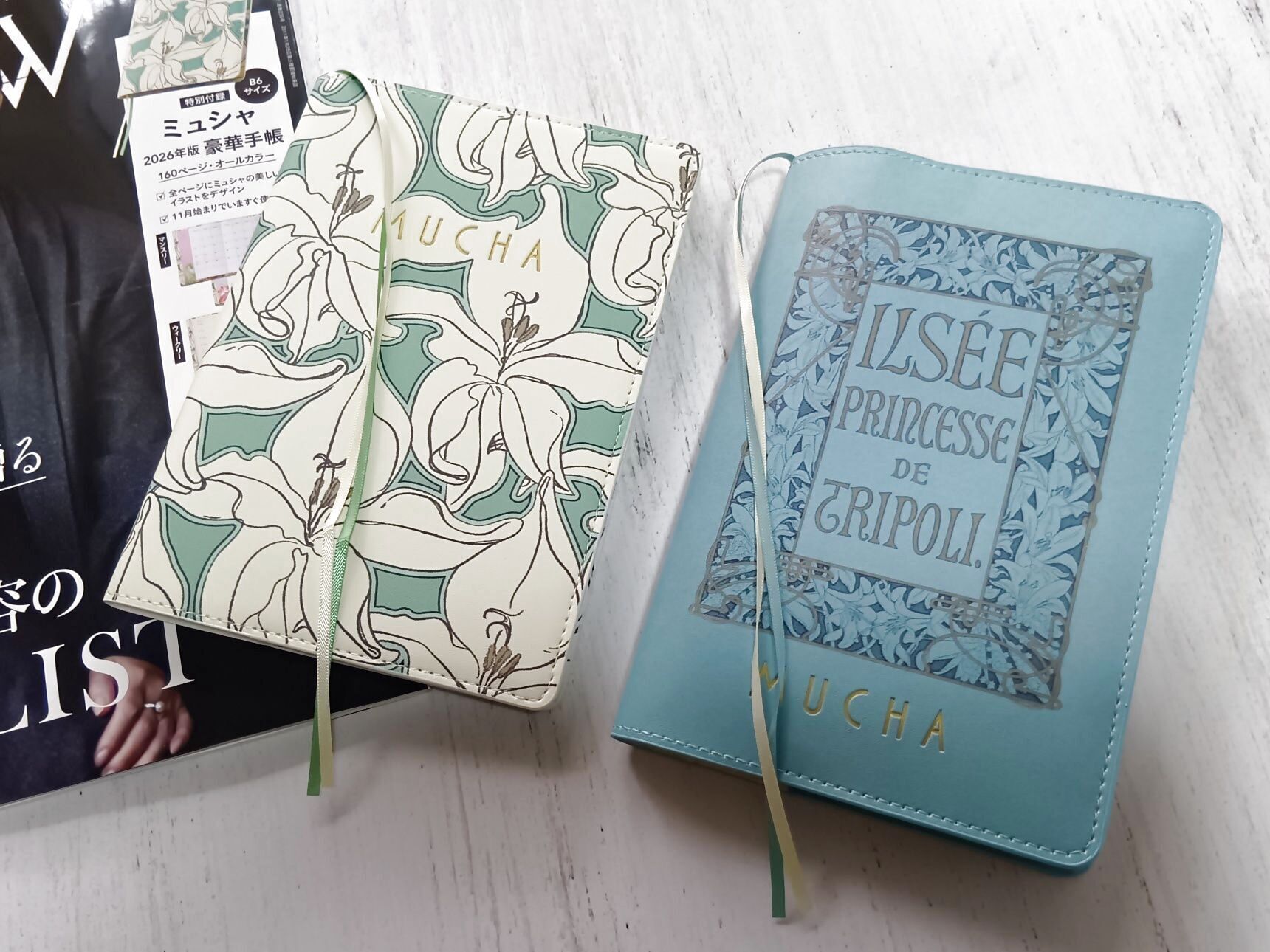 昨年の手帳(右側)と比較してみました!付録のスケジュール帳はアート性+実用性が高いので、2026年度の手帳が欲しい方・ミュシャ好きには特に魅力的!