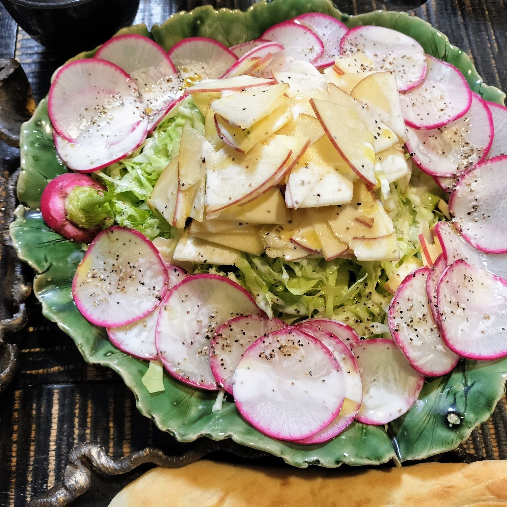 外側は、ピンク色を帯びた美しい赤、内側はまっ白!サラダ用なので皮も美味しく食べられる!大根特有の辛味は、ほんのり感じますが、シャキシャキと瑞々しく美味しい!普通の大根より小さく、人参に近い大きさと形!