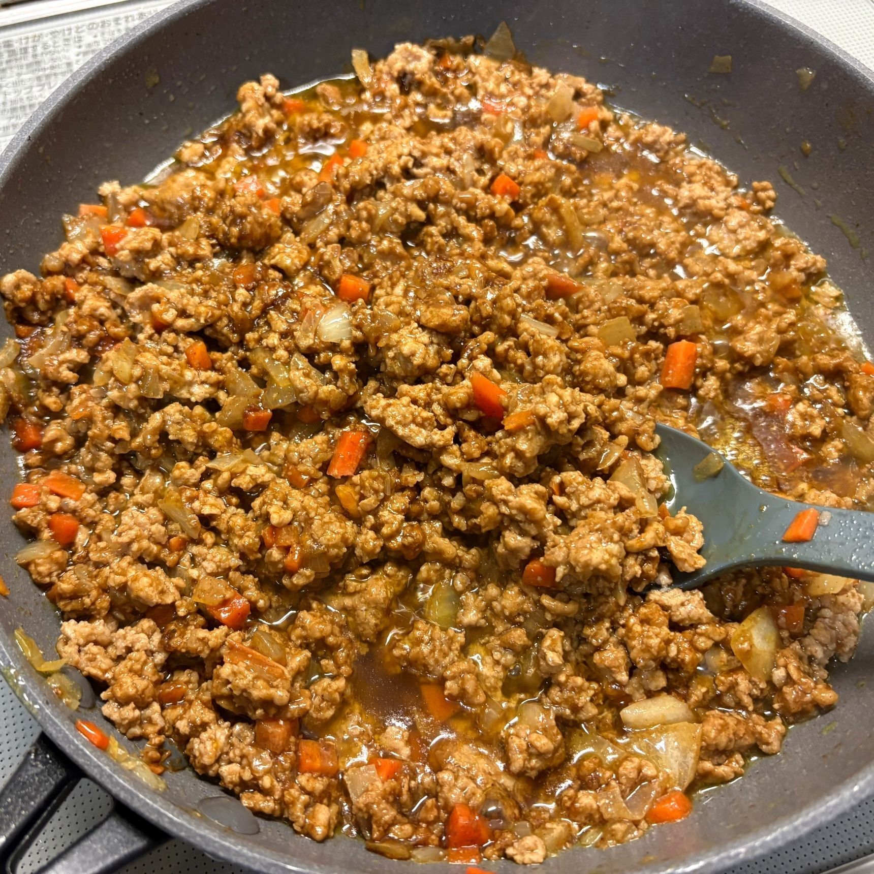 細かくカットした野菜とひき肉を炒めてルウを混ぜただけなのに、食べてみるとものすごく深いコクを感じました。
