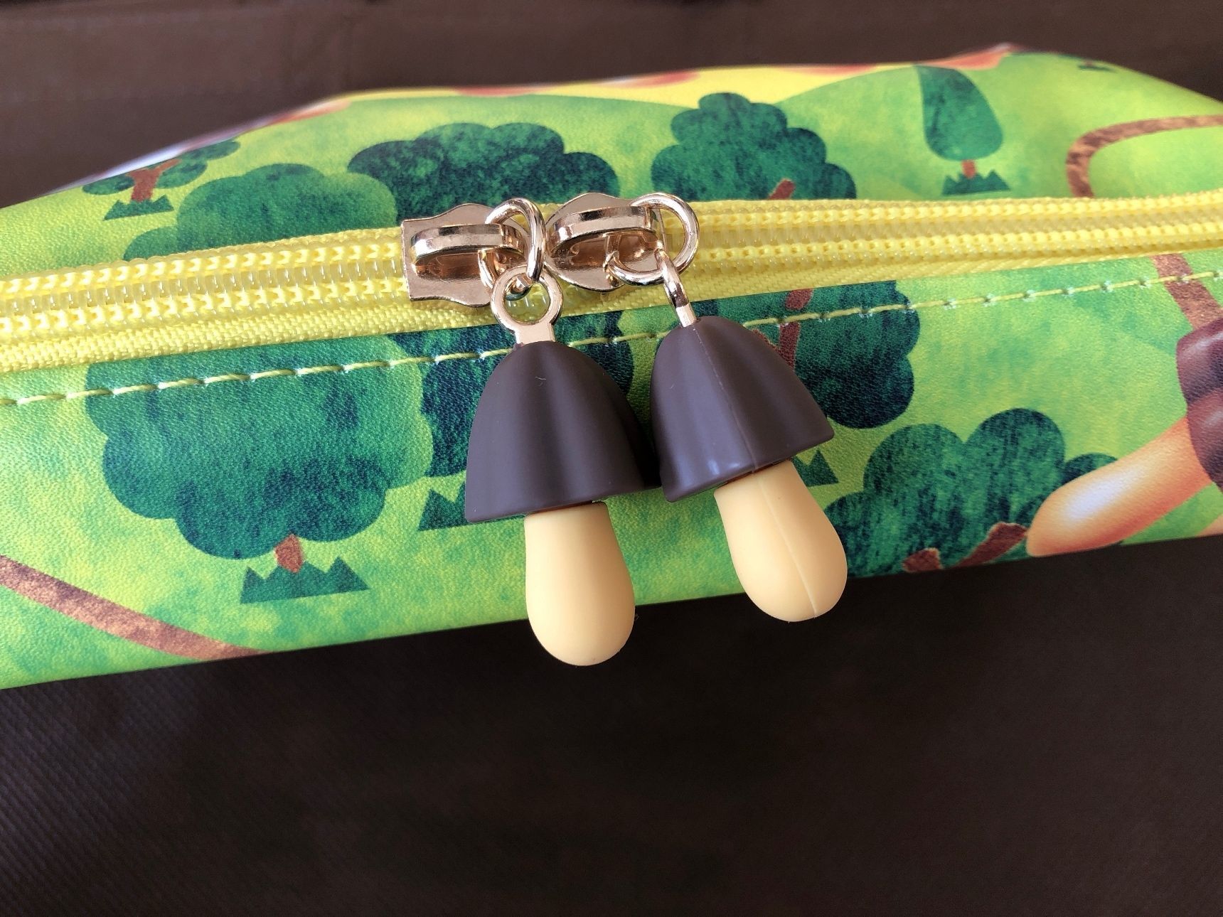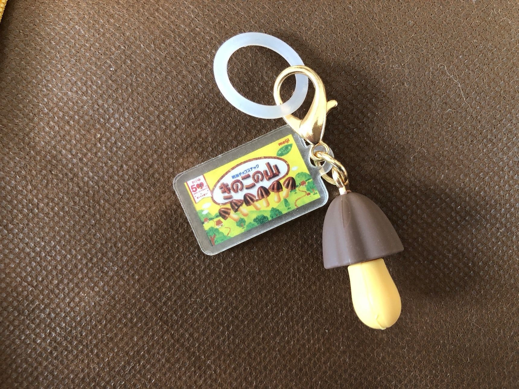 今すぐ食べたくなるようなきのこの山とアクリルチャームがついています。