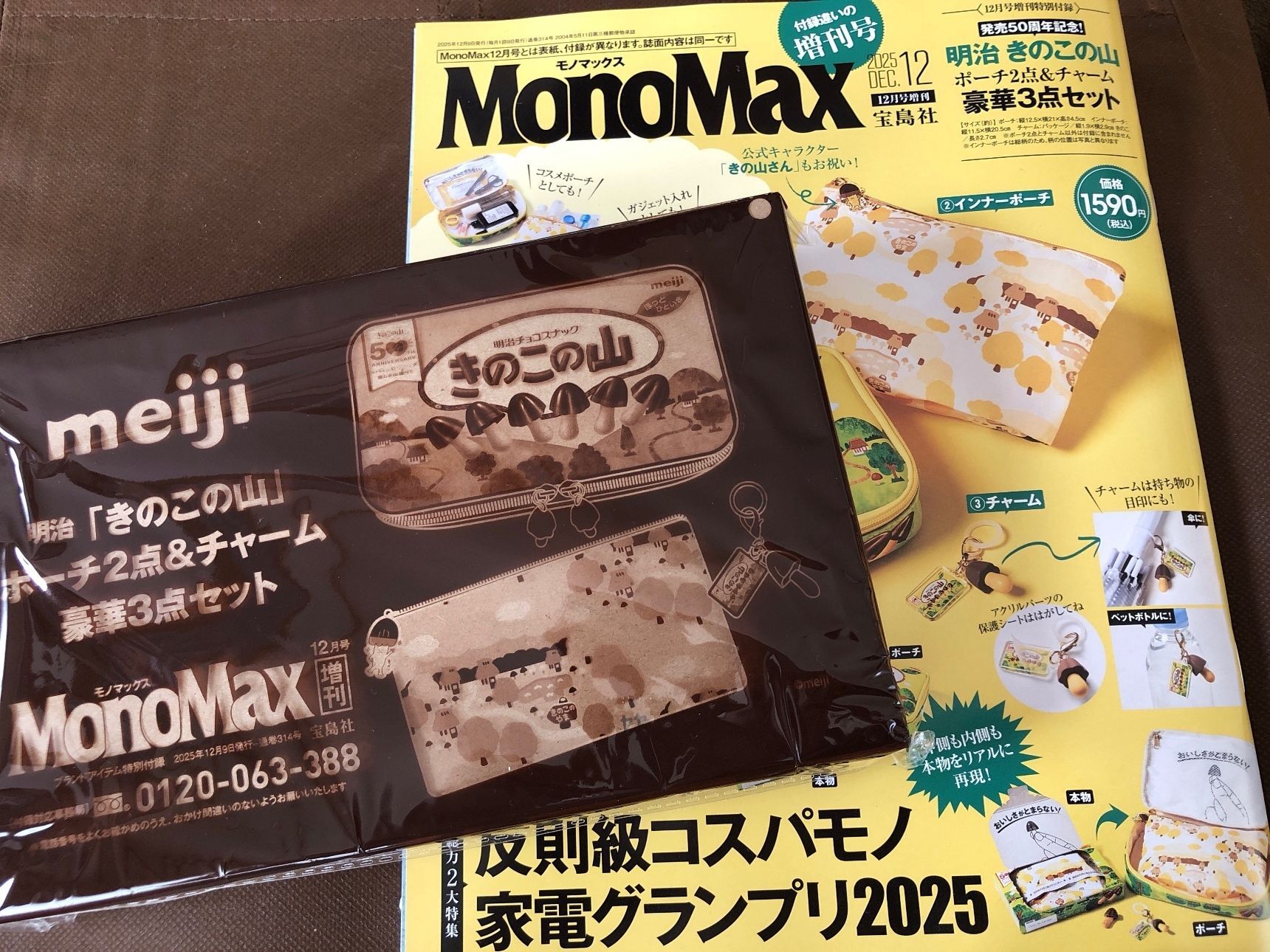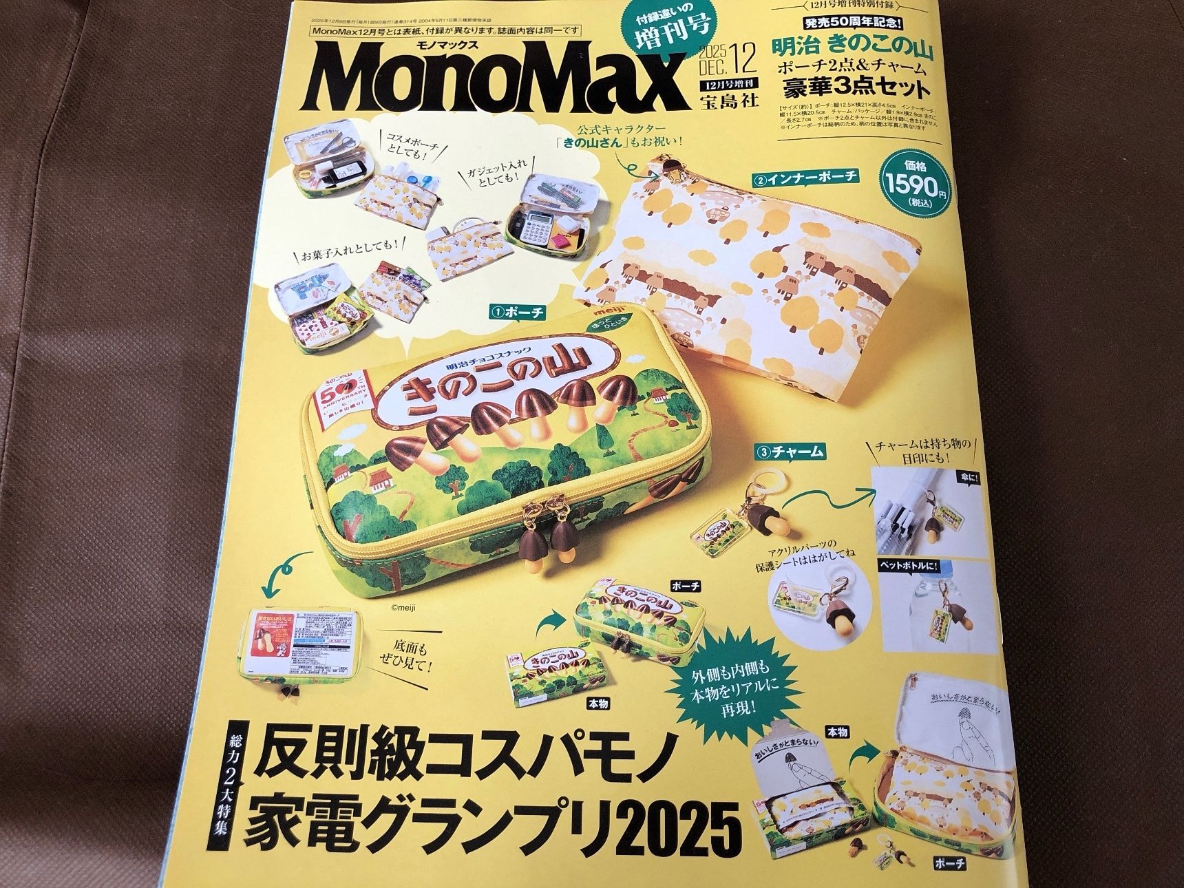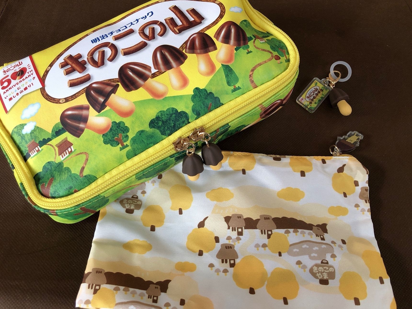 リアルな『きのこの山』デザインの3点セット。発売50周年記念のムック本のようです。