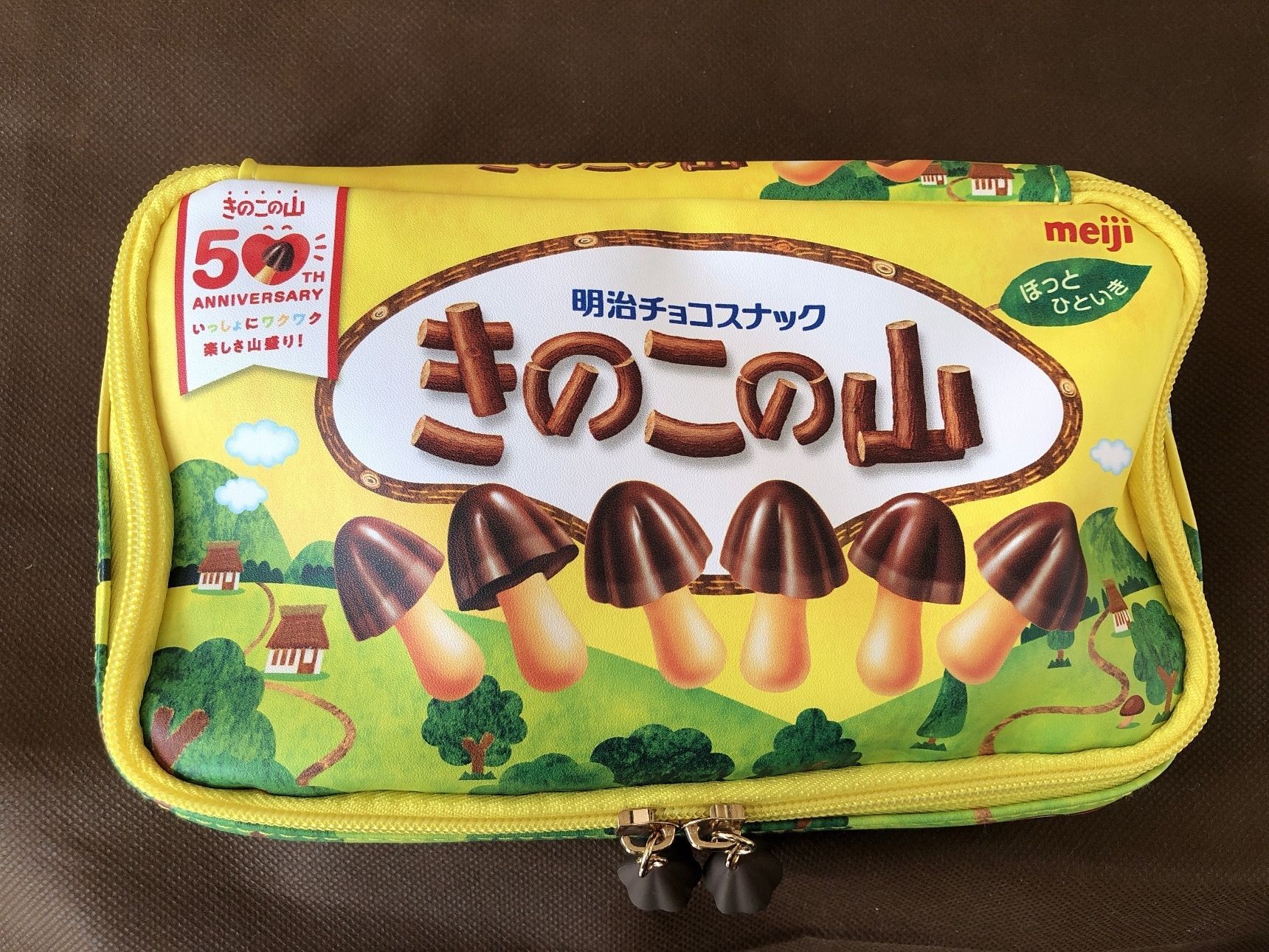 ▶︎明治『きのこの山』の箱そっくりなポーチ