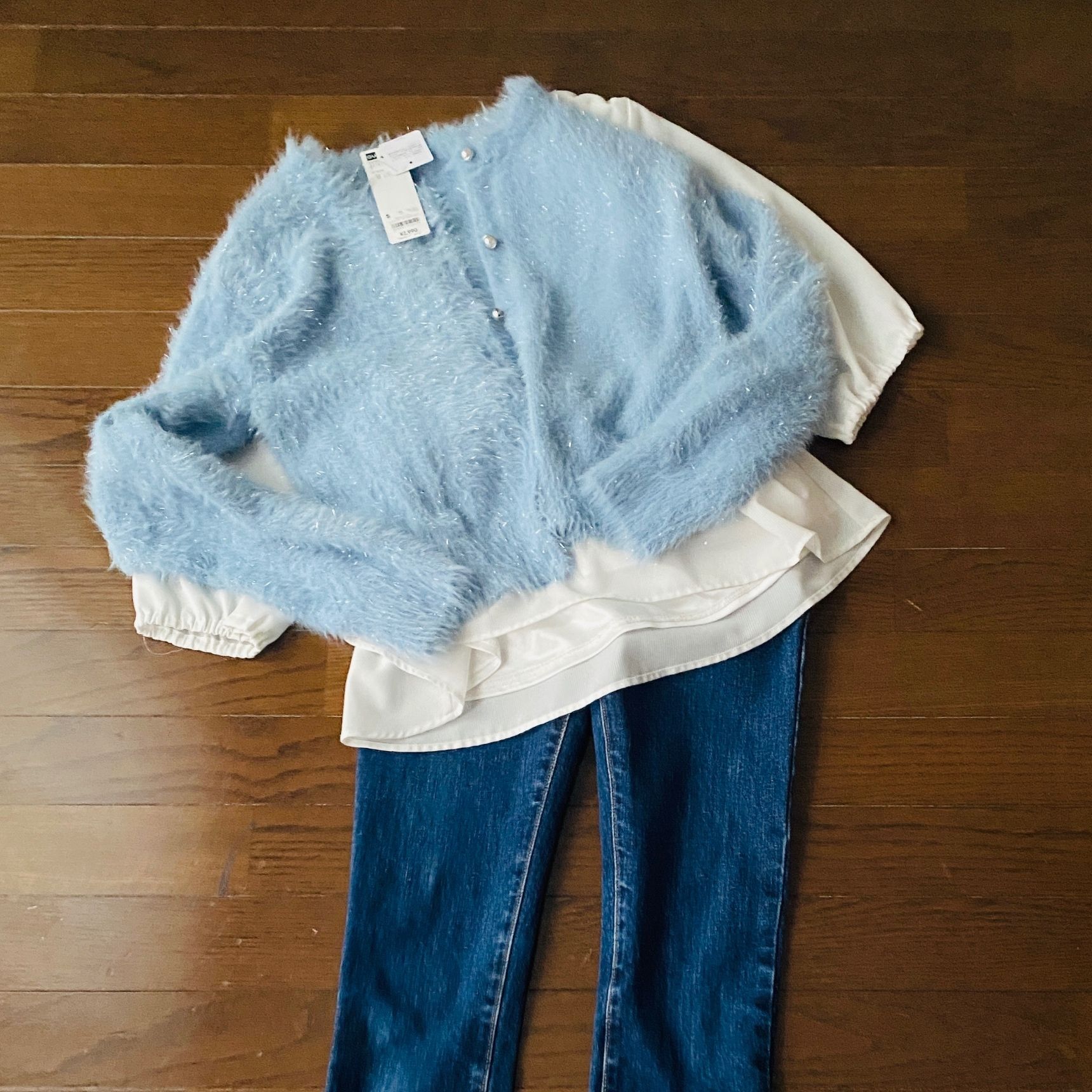 高級感満載のラメが入った光沢素材で、ブラウスやインナーと合わせて、軽くて暖かく、着心地も良いです。
