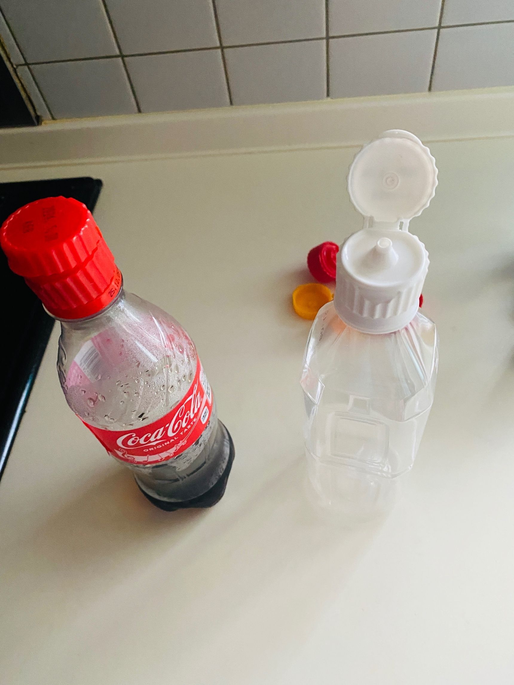 コーラやラベルレスのお茶のペットボトルに嵌めてみました。