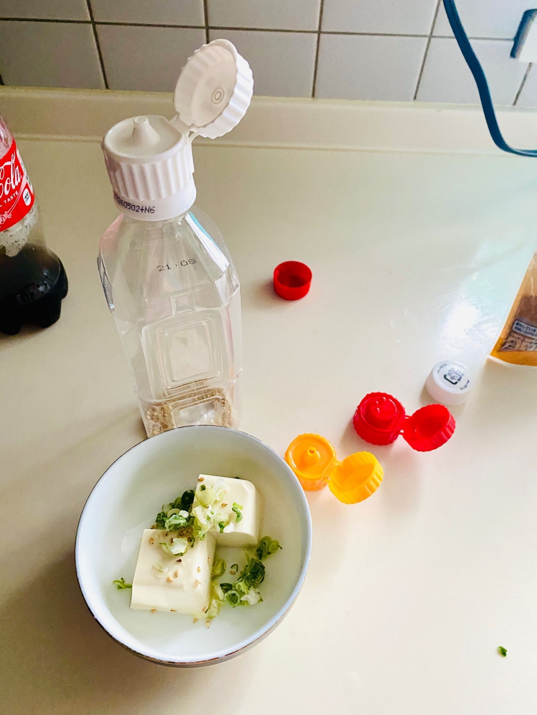 少し分かりづらですが、冷奴にねぎ、炒りごまをパラパラしてみました。