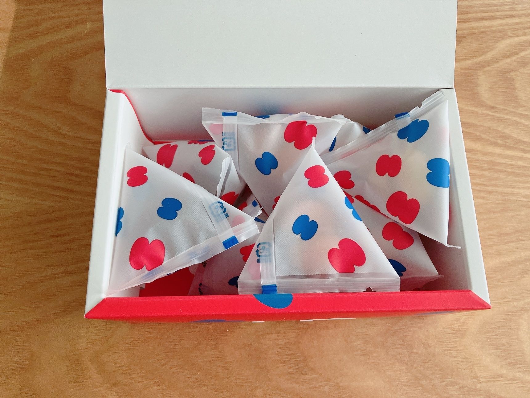 味は「チョコ」と「ミルク」がそれぞれ3個入り「いちご」が2個入りの合計8個です。