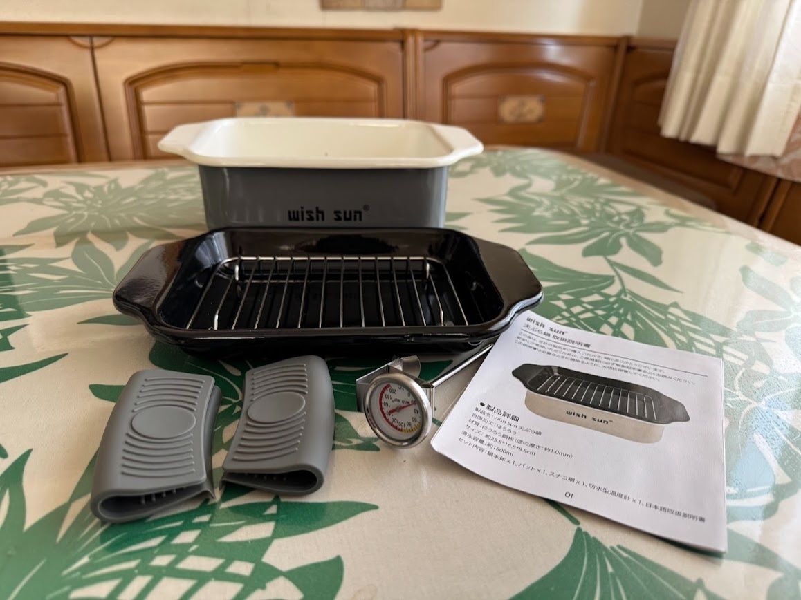 セット内容は鍋本体・バット・すのこ網(油切り用)・防水型温度計と充実しています。