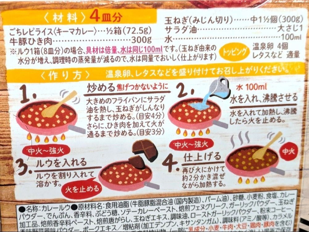 商品の詳細を見てみると…「カルダモン・黒胡椒・花椒などのスパイス」と表記されていました。思った以上に本格的なスパイシーキーマカレーの味わいです!!
