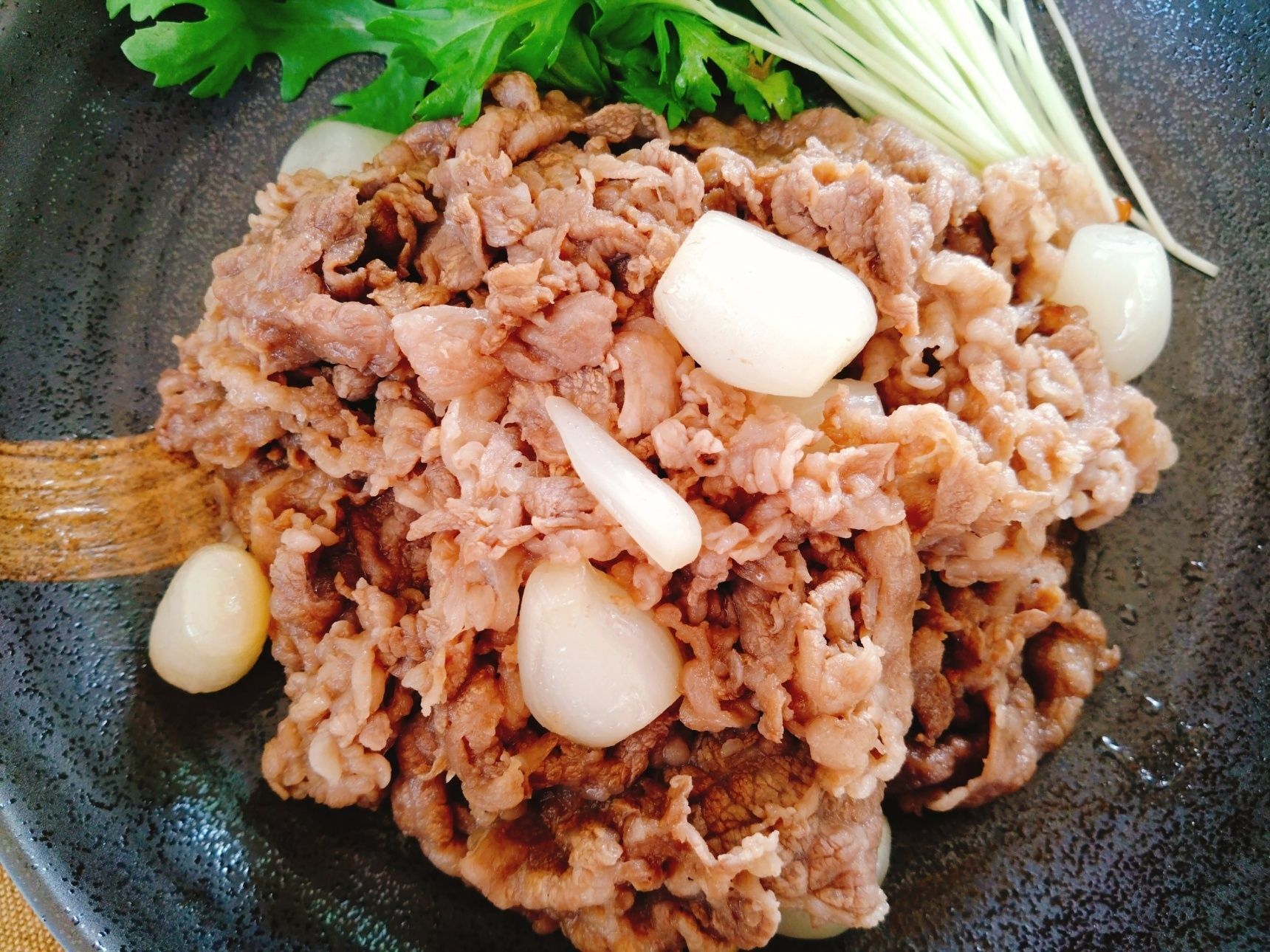 1.フライパンにこめ油を熱して牛肉をほぐし炒めたら