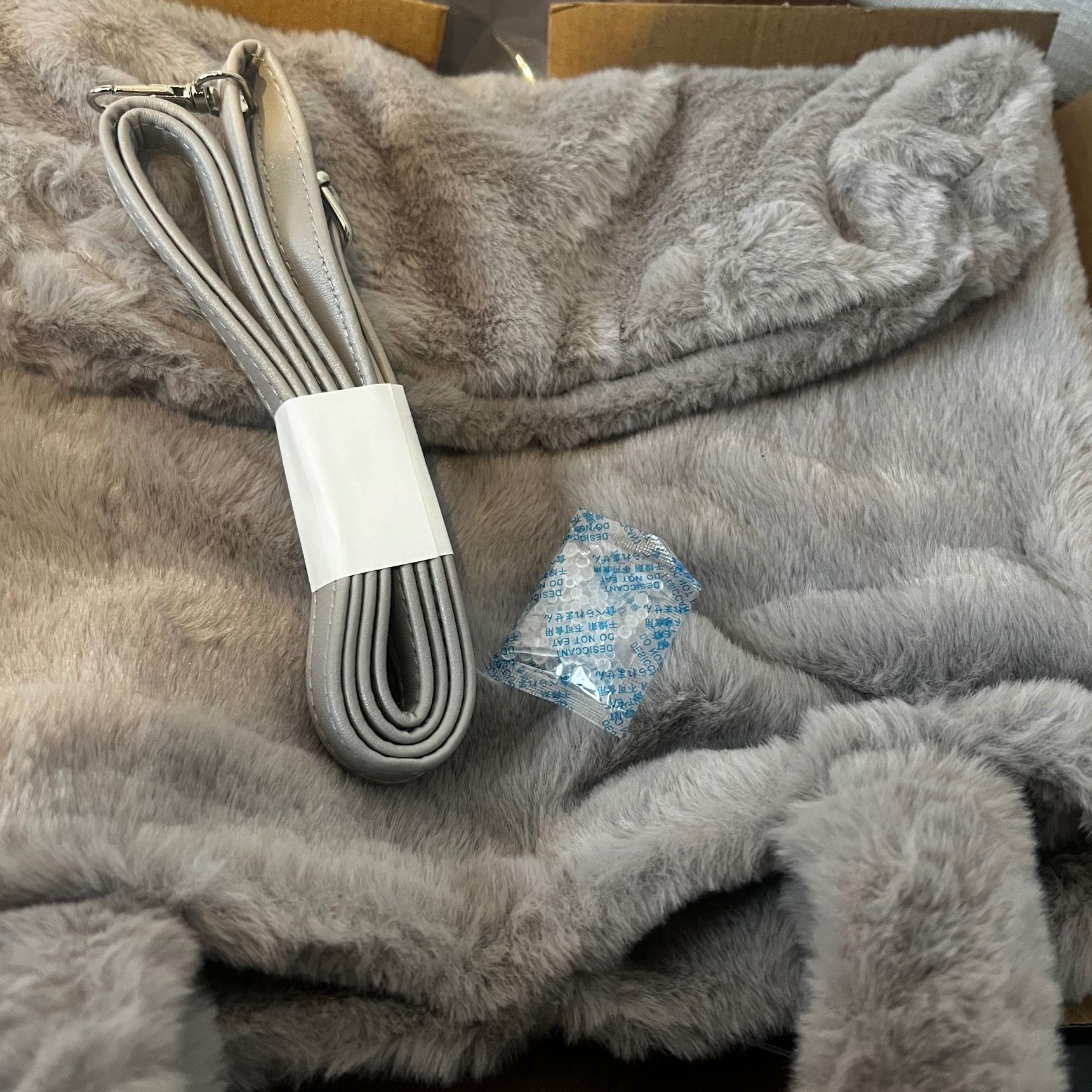 テープを切るとふわんふわんのバッグが溢れんばかりに登場!