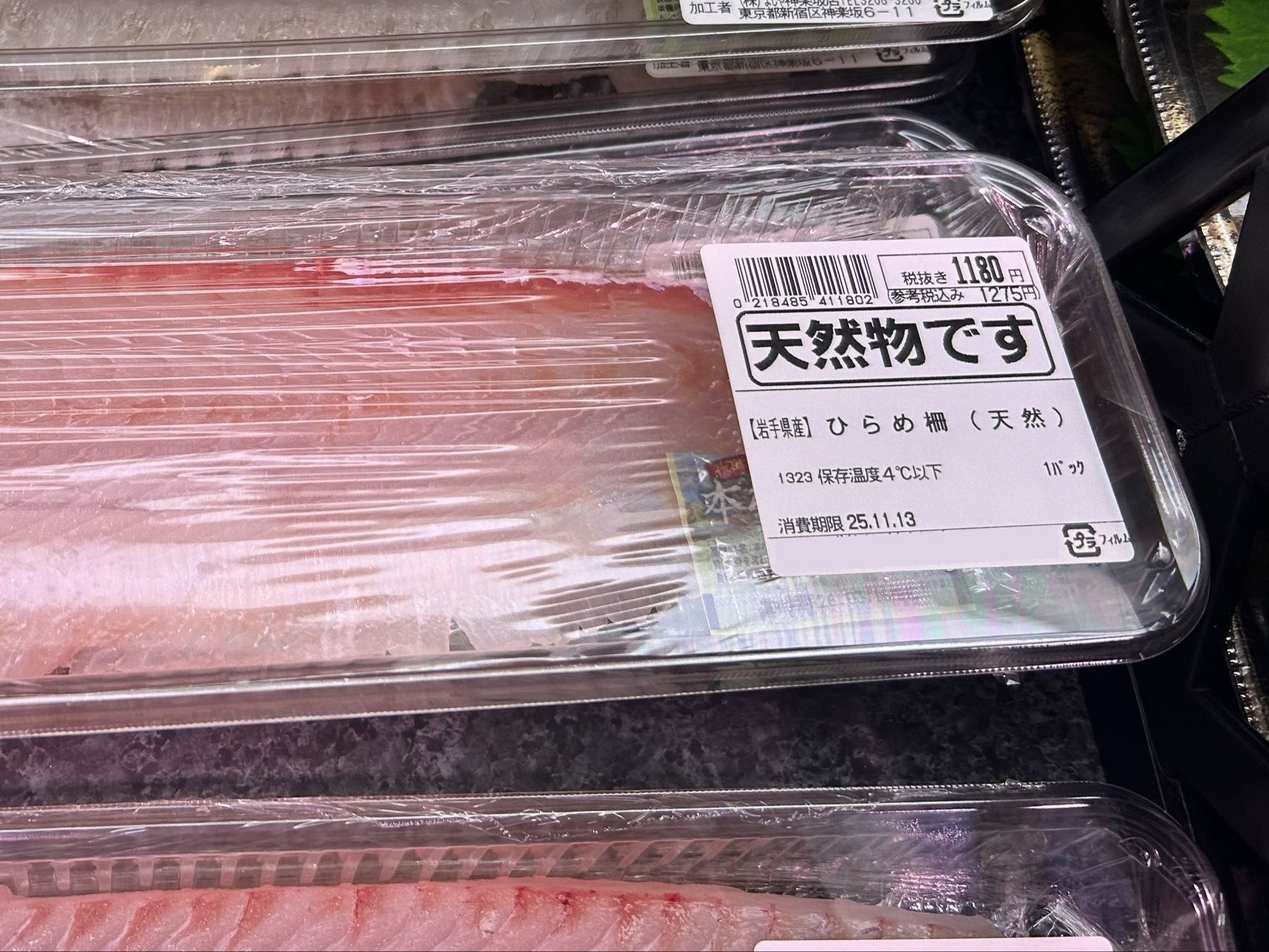 今回はさくっと2軒のスーパーをまわりましたが、鳥取、長崎、岩手と全国から届く「天然魚」が豊富。パック越しにも身がしまってプリッとした印象でした。