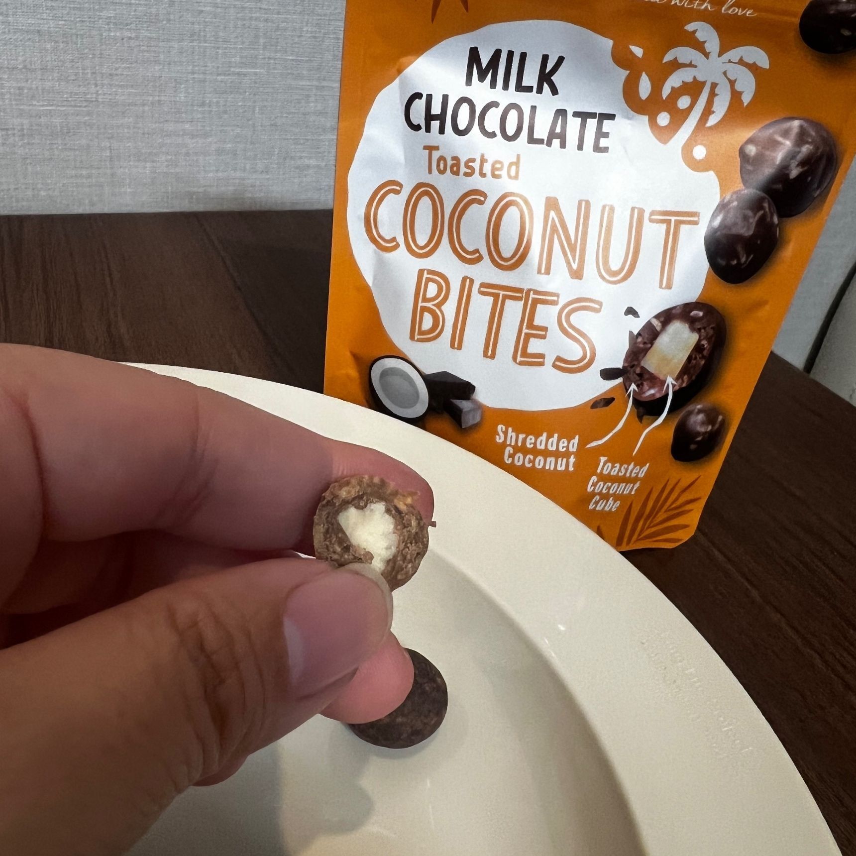 まずはココナッツを割ると、確かに周りのチョコに乾燥したココナッツチャンクが練り込まれていて、中心にも大きめの乾燥ココナッツが鎮座しています。