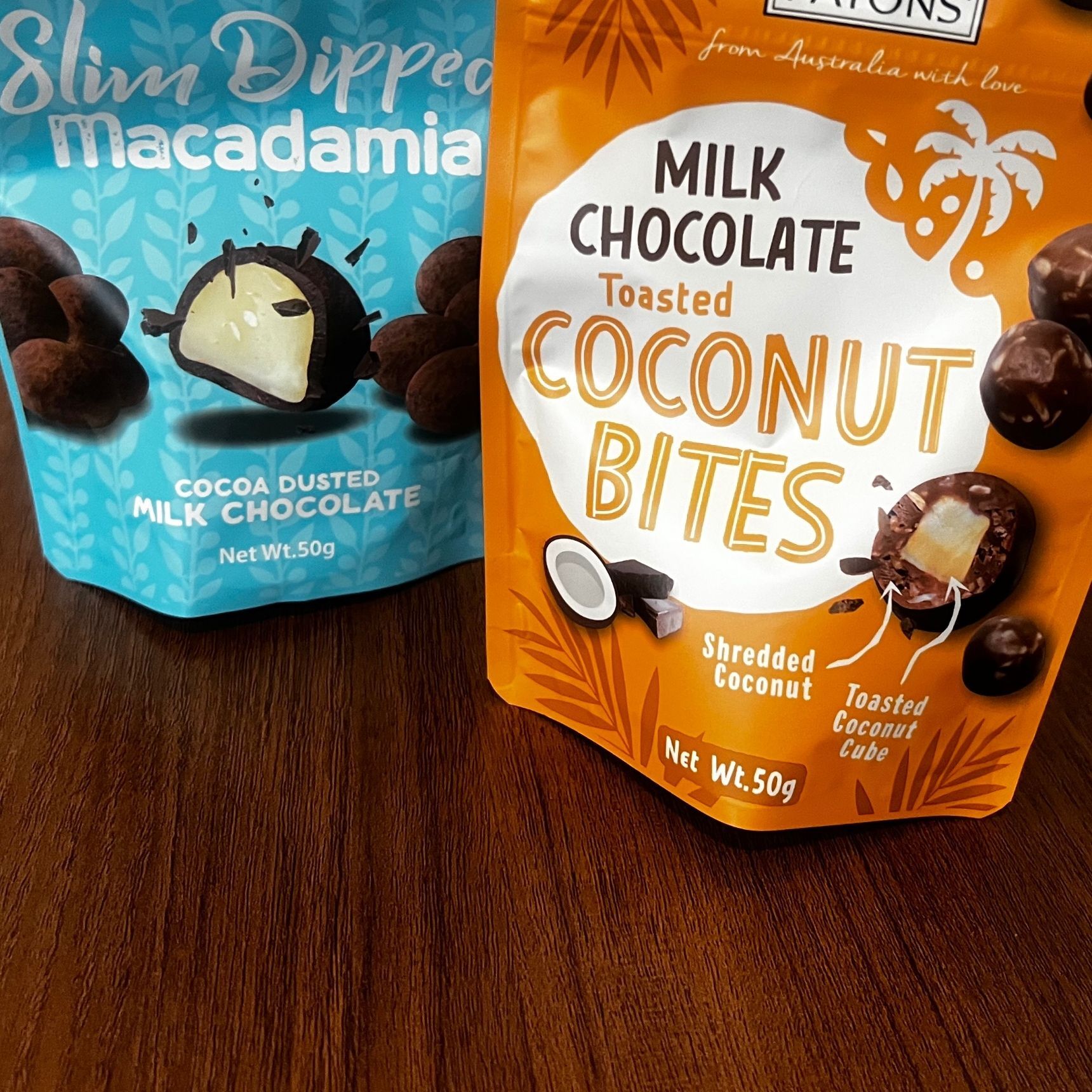 マカダミアが丸々1つ入ったものと、乾燥ココナッツが入ったものを購入。両方通常価格よりお買い得になっています。