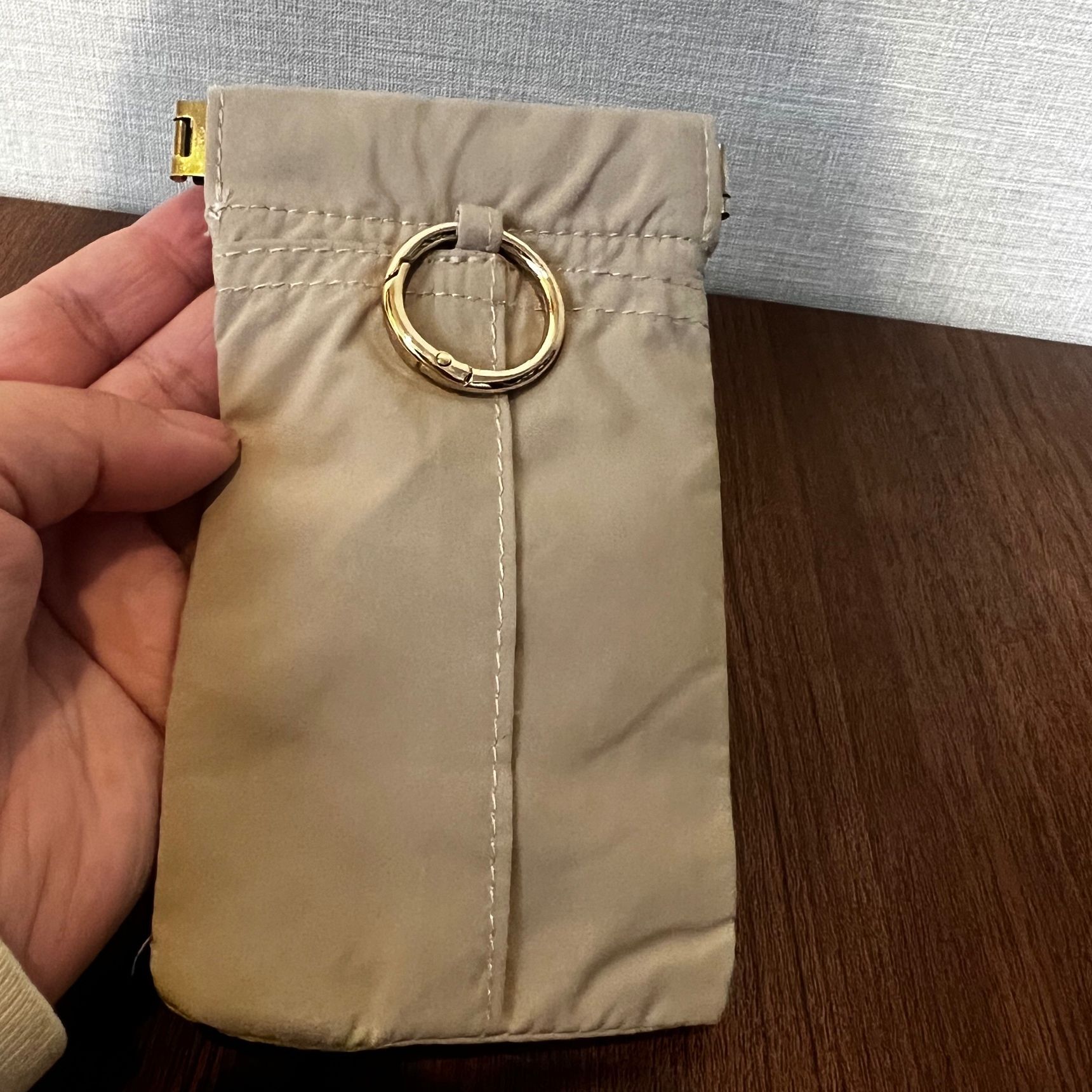 とめやすいカラビナ風のホルダーも付き。後から気付きましたが、この後ろ部分にはティッシュが入れられます。