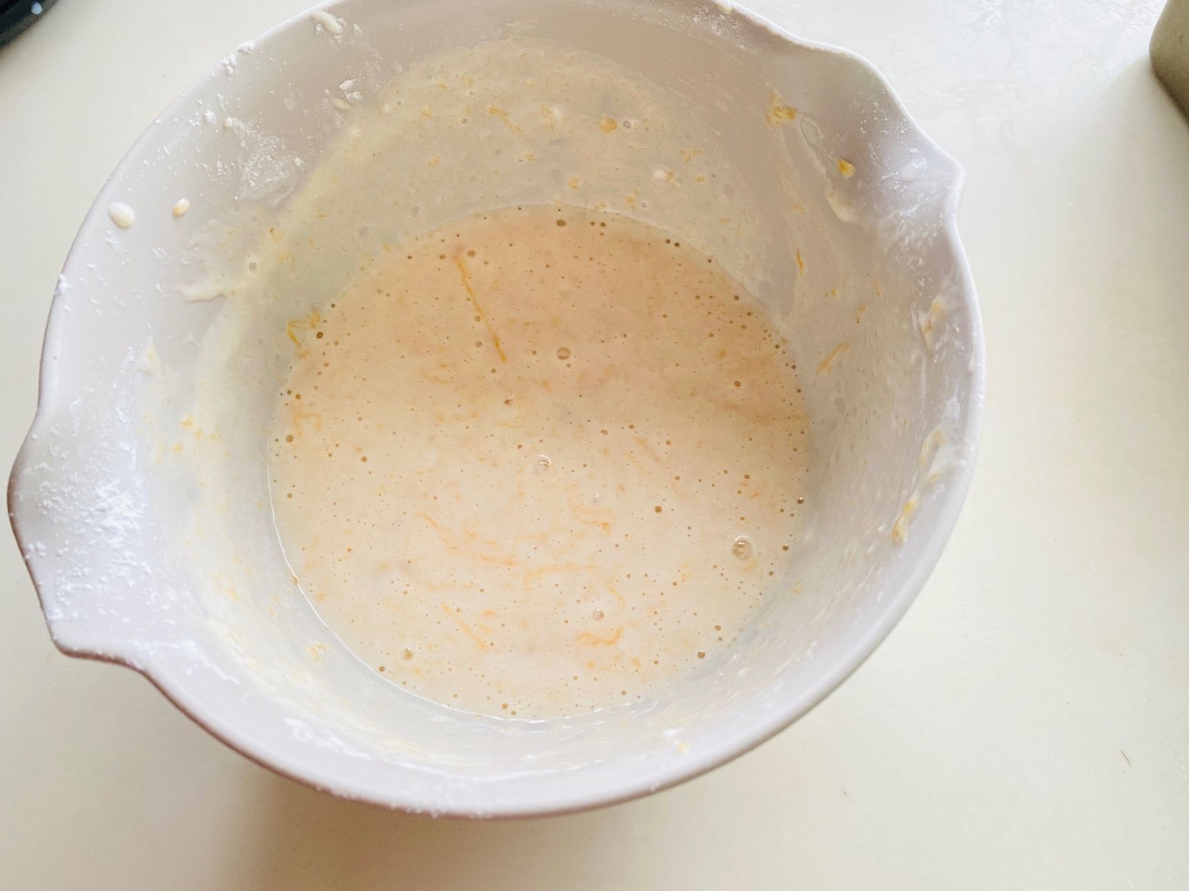 ②ボウルにaの材料を全部入れ、よく混ぜます。①の完熟柿を潰しながら加えよく混ぜます。
