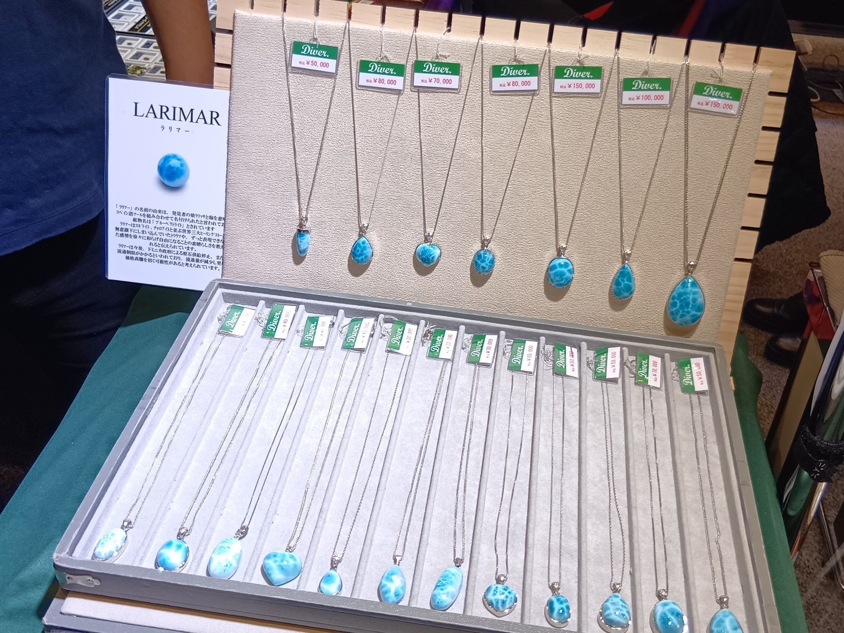 普段あまり見る機会のない天然石・ラリマーのネックレスも見ることができました。