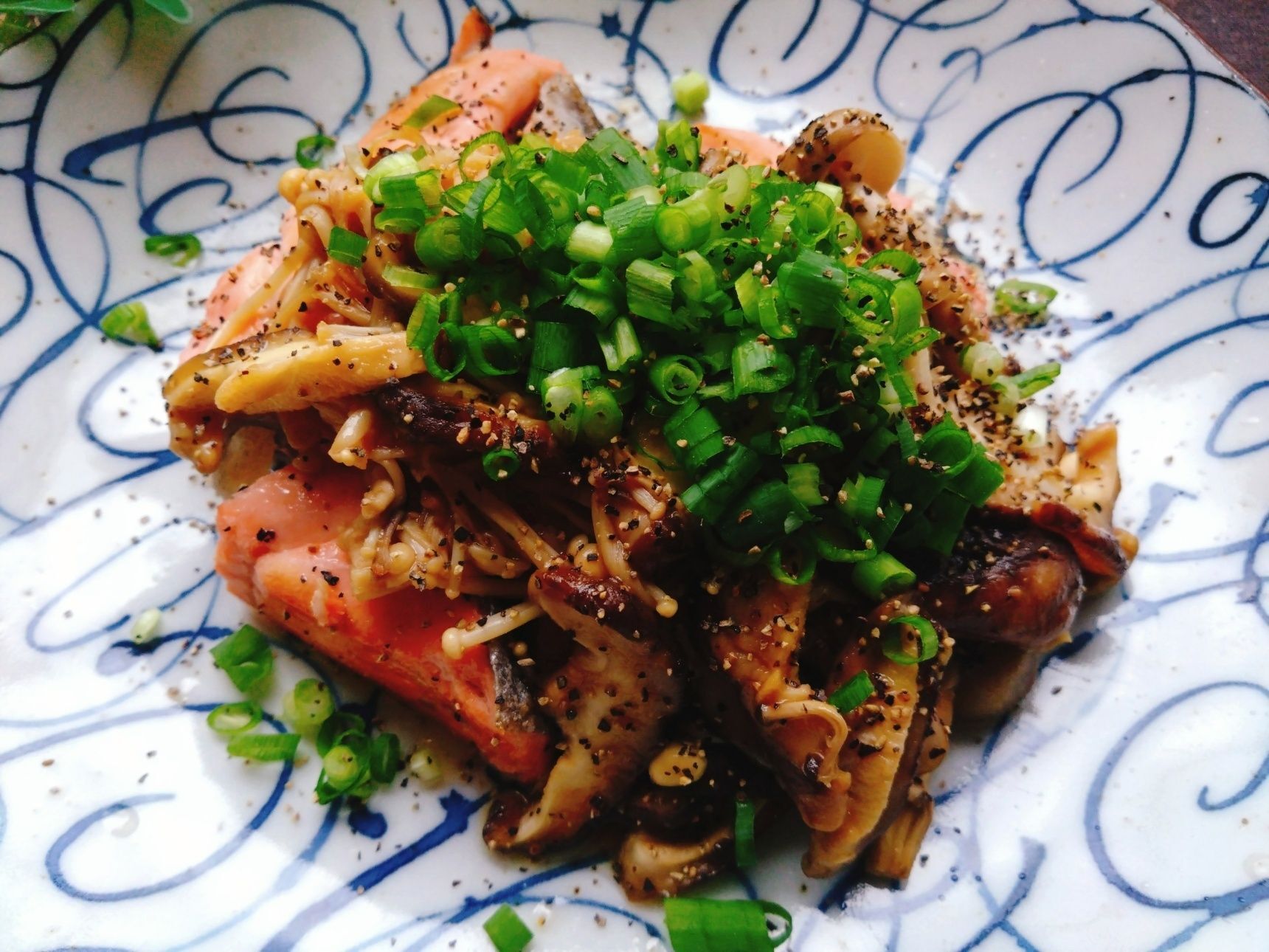 Aを加えて全体に絡ませ、香ばしい香りがしてきたら鮭の上にのせ