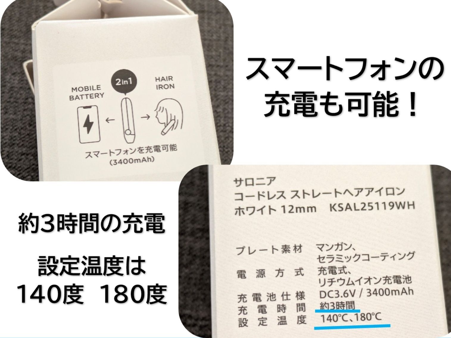 SALONIAから、とっても便利で使いやすいコードレス ストレートヘアアイロンが発売されました。税込み6578円 色はホワイト・グレー・ピンク・ブルーの4色です。