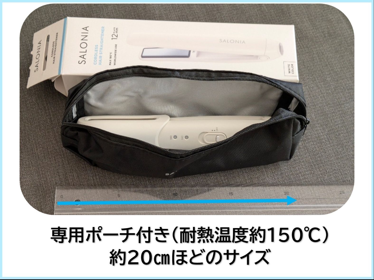 専用のポーチ付き、サイズも約20㎝ほどで持ち運びしやすいです。