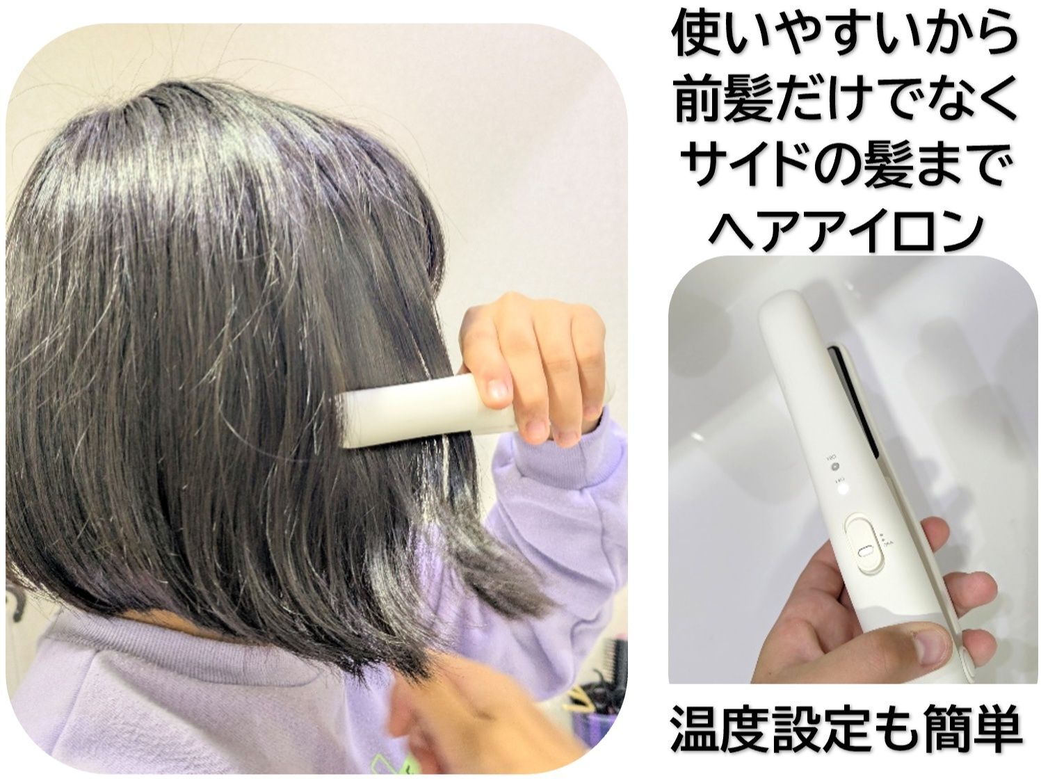 ヘアアイロン初心者の中学の娘も、すぐに使い慣れて前髪だけでなくサイドの髪までヘアアイロンしています(*´ω`*) ヘアアイロンを初めて使う方にもいいもしれませんね。
