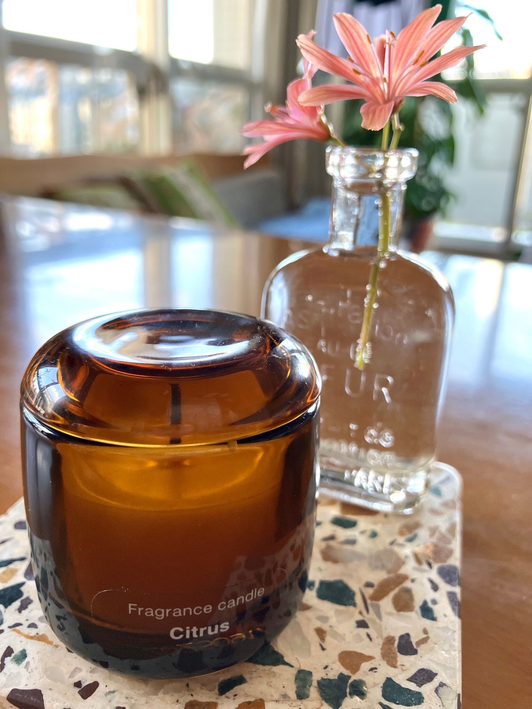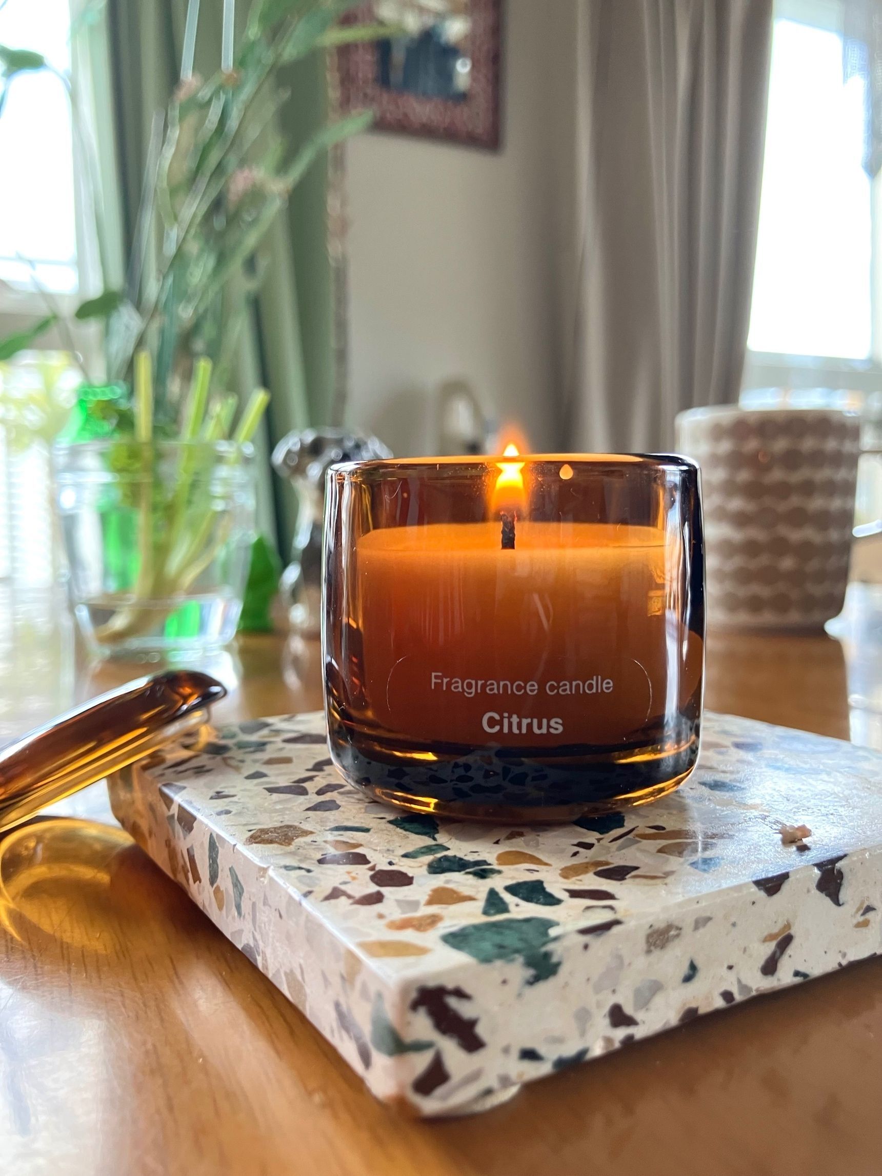 キャンドルは夜つけるイメージだったけど、このほのかですっきりとした香り(シトラス)なら夜に限らず朝や昼でも灯してリフレッシュしたくなります。