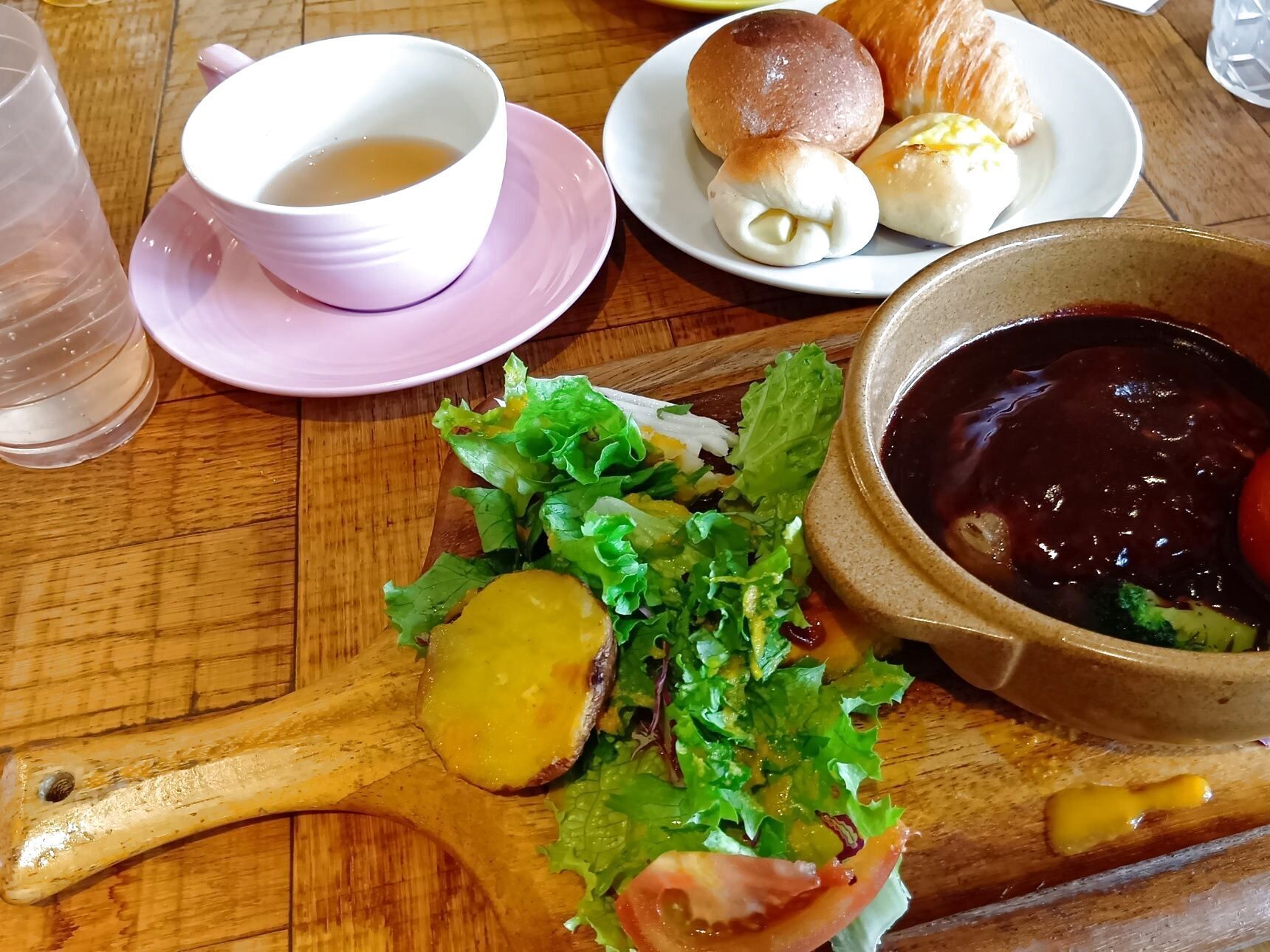 パンもとっても美味しいですが、 ハンバーグも柔らかく、添えられたとろーり半熟卵、ソースと一緒にいただくと本当に絶品! パンがどんどん進みます。もちろん、 お野菜も新鮮で美味 でした。
