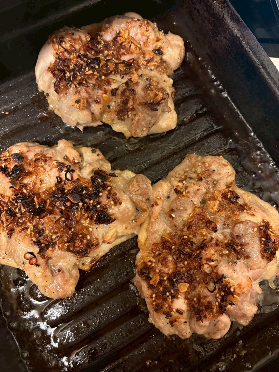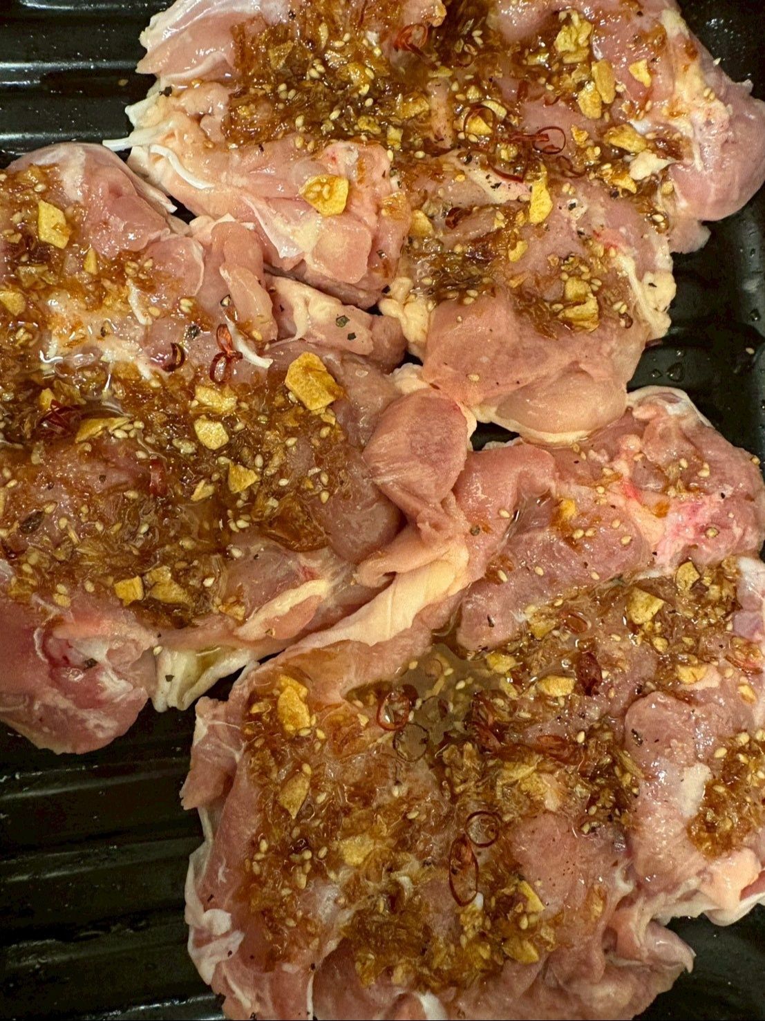 生のネギで漬け込んで焼くのとは全然違う香ばしさと食感です!ほかの中華にも使ってみようと思います。