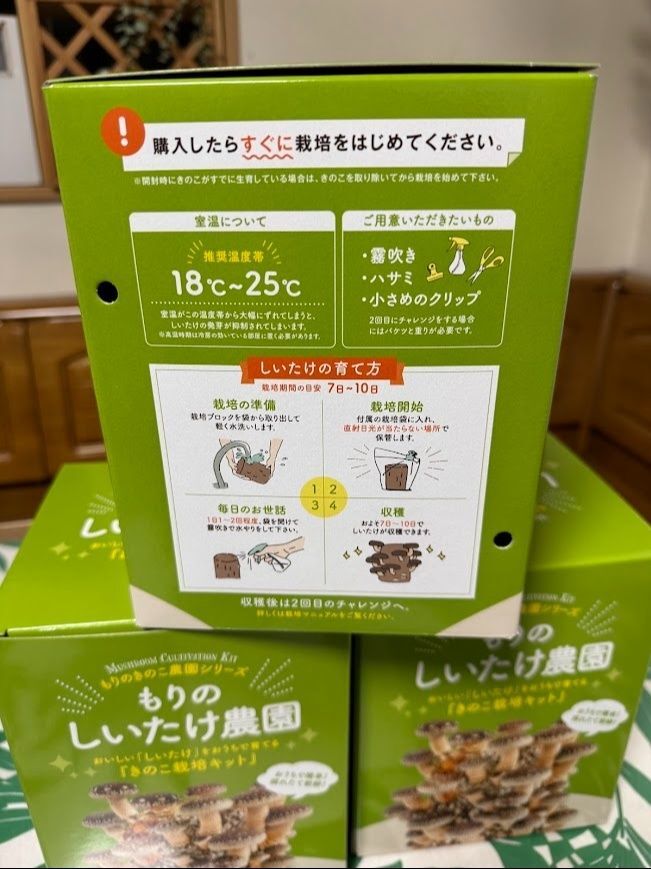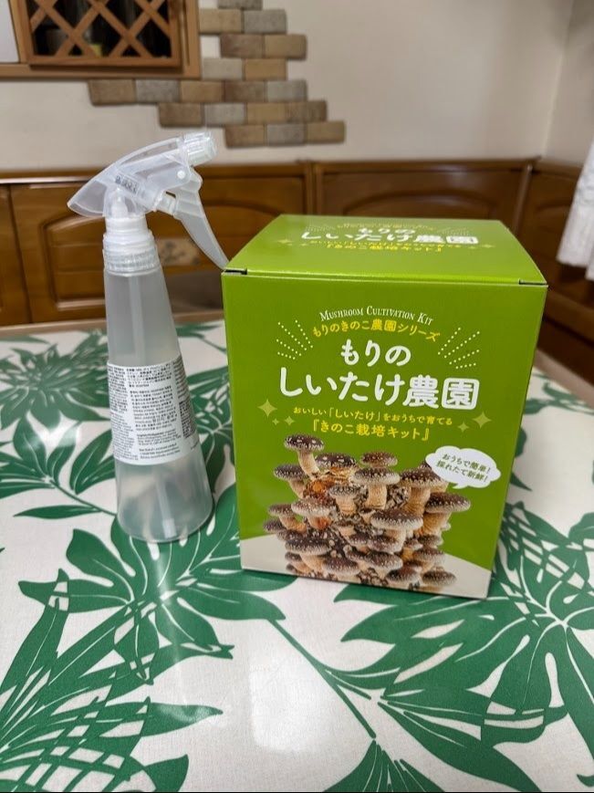 シイタケを自宅で育てる「きのこ栽培キット」です。おうちの中で栽培できて、水やりと温度管理で簡単に発生させることができます。