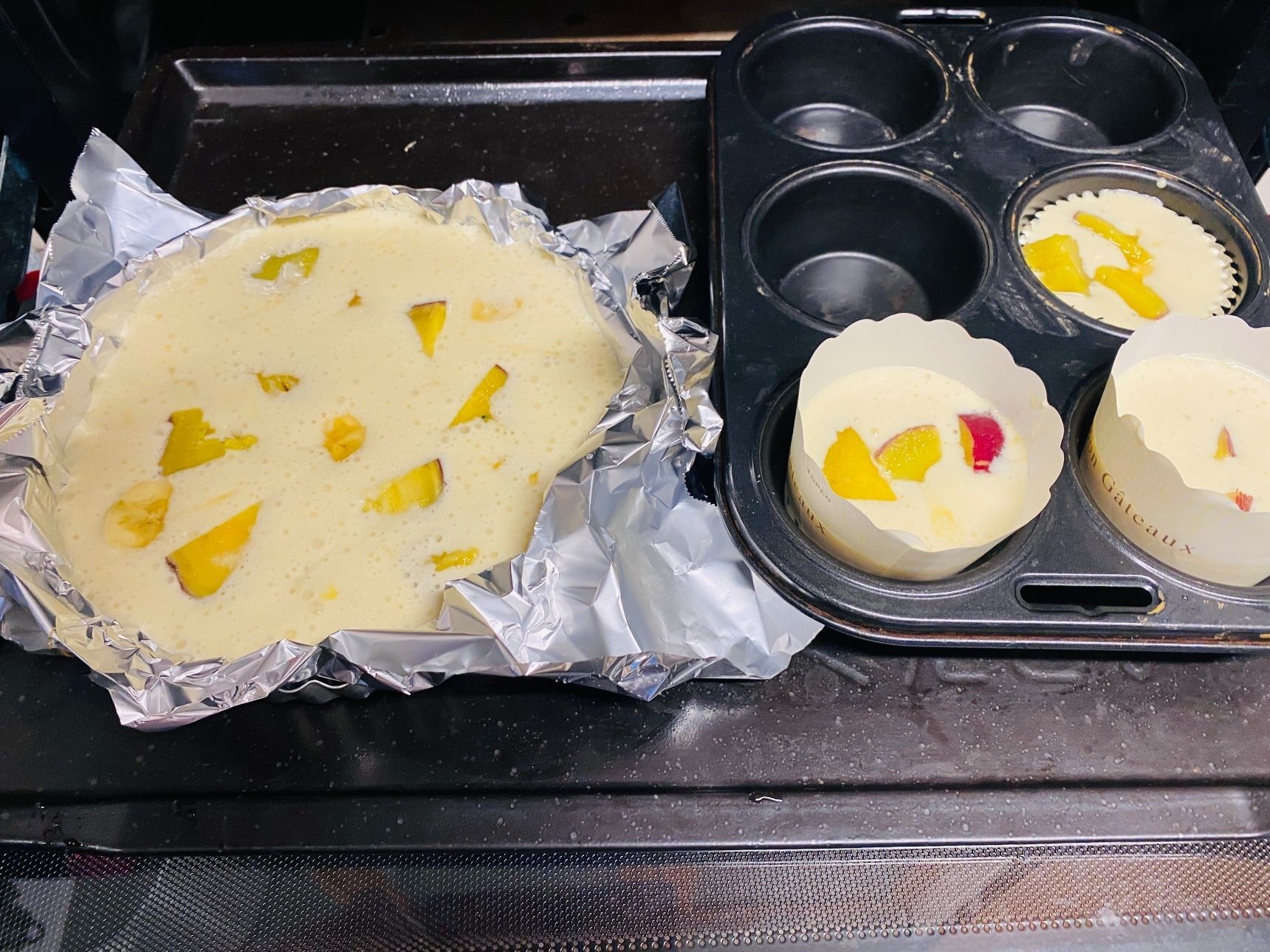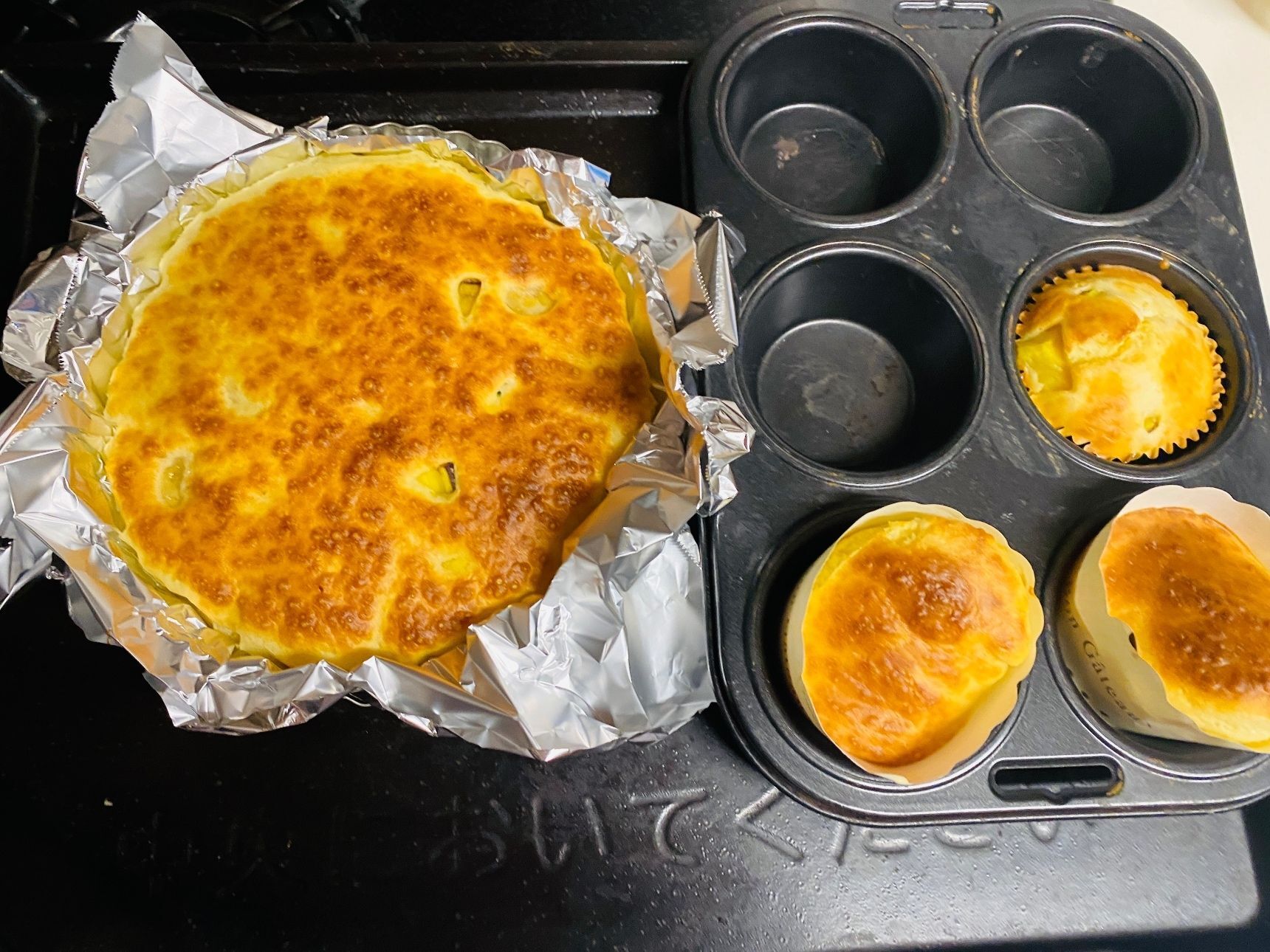 サイズ18cmの型が小さかったもので、生地が余ってしまいマフィンカップ型にも入れて焼きました。20cm型サイズなら大丈夫ですよ。