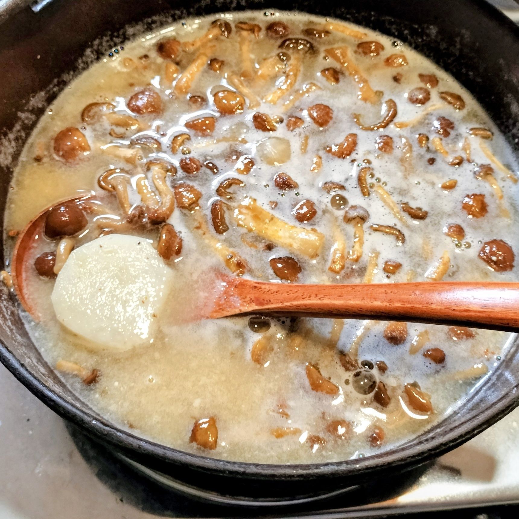 2人で大根800g!出汁の効いた味噌鍋!大根の食感はお好みで!なめこ鍋!大根鍋!