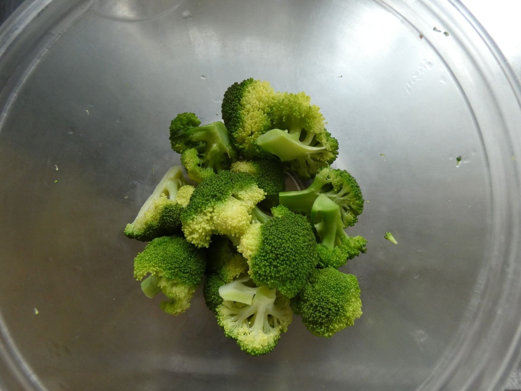 ブロッコリーは小房に分けます。耐熱容器に入れてふんわりラップをし、電子レンジ600Wで1分くらい加熱します。