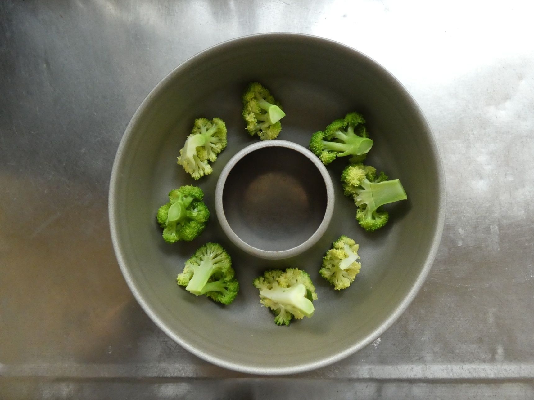 ブロッコリーとサニーレタスを型に入れてお皿にひっくり返します。