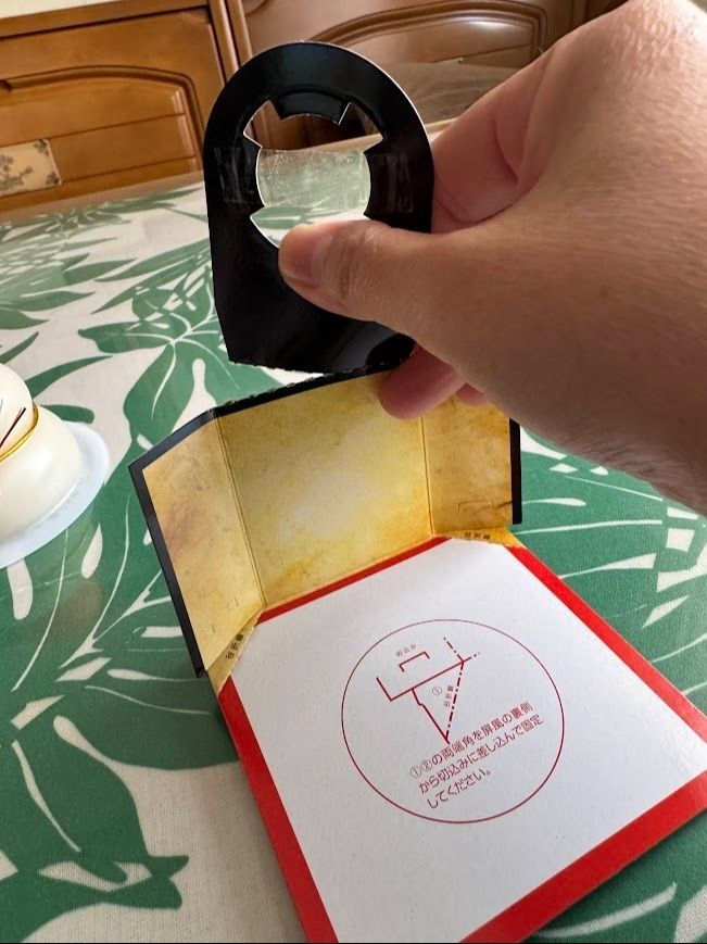 橙、水引、四方紅、屏風がついています。余分な部分をミシン目があるから切り落とします。
