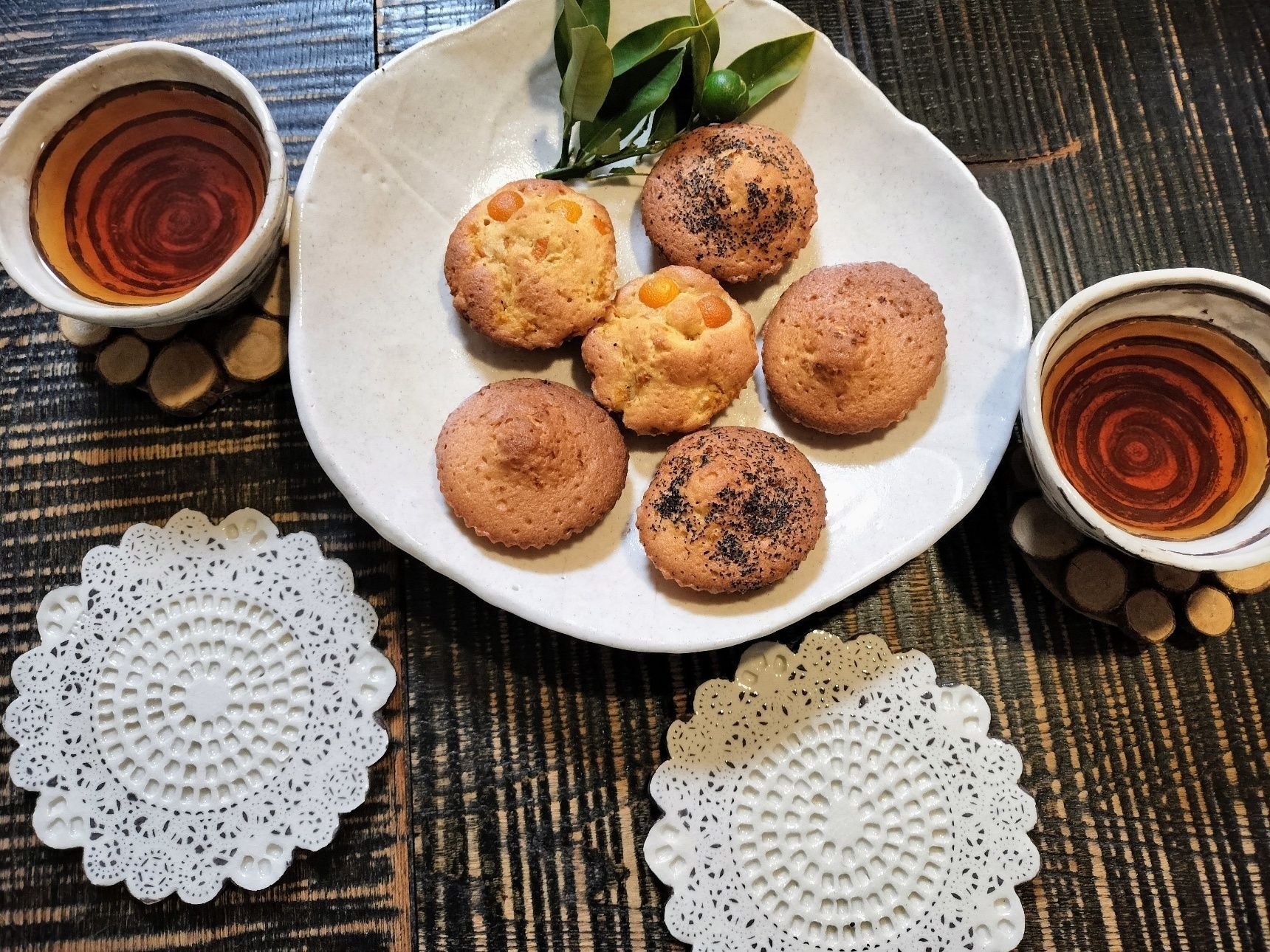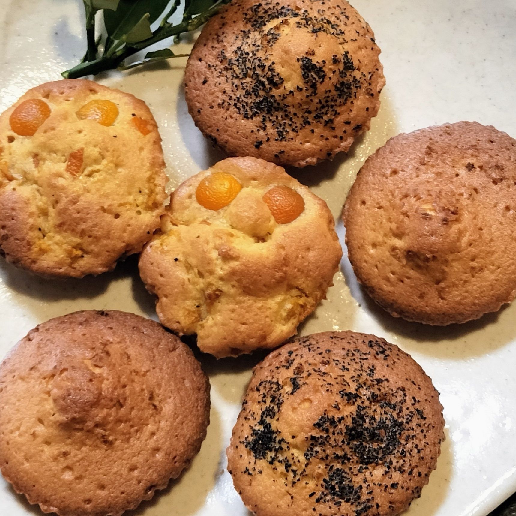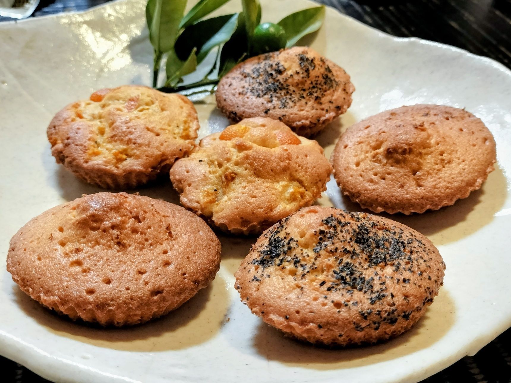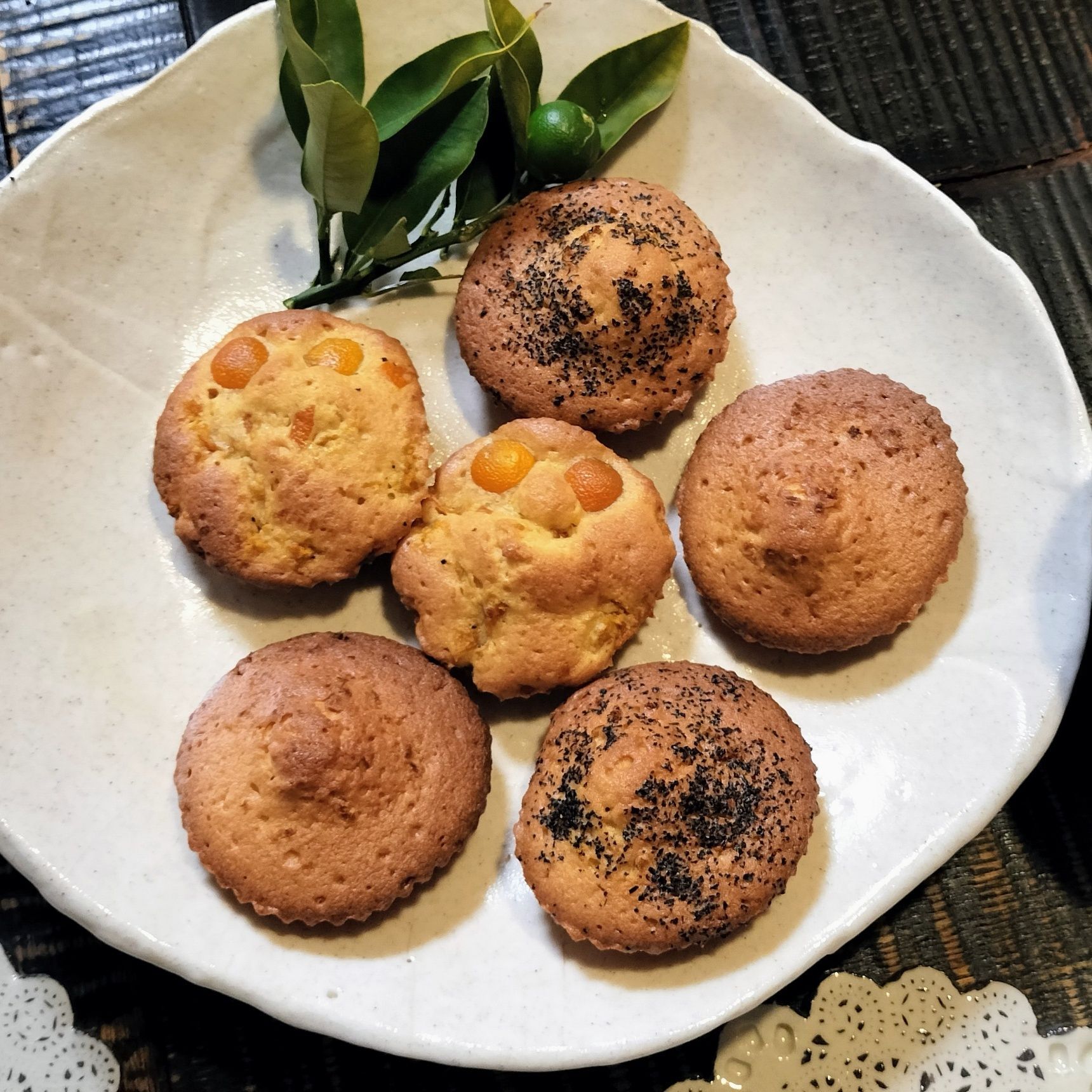 きんかんマドレーヌ(画像下):きんかんの皮と半分に切ったきんかん